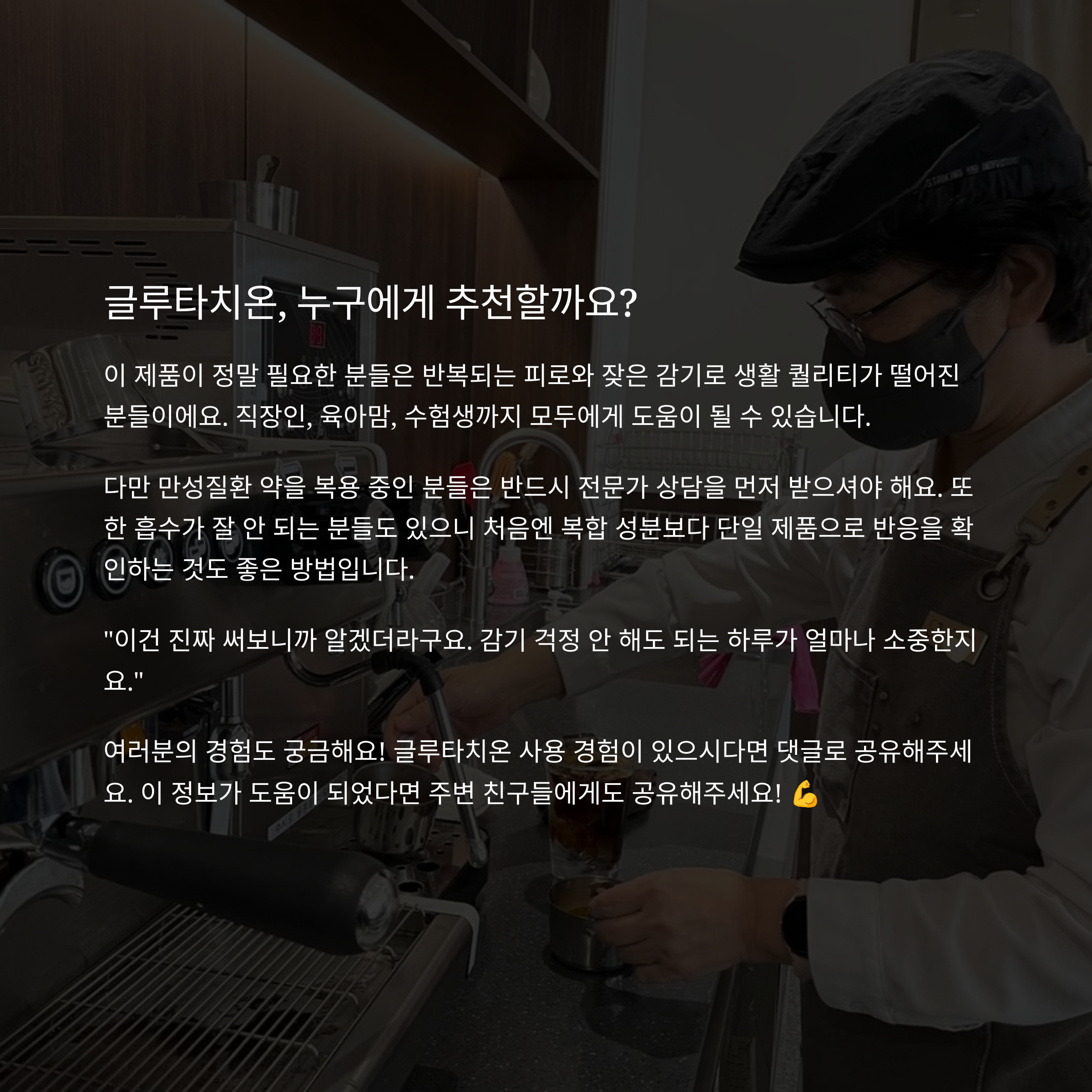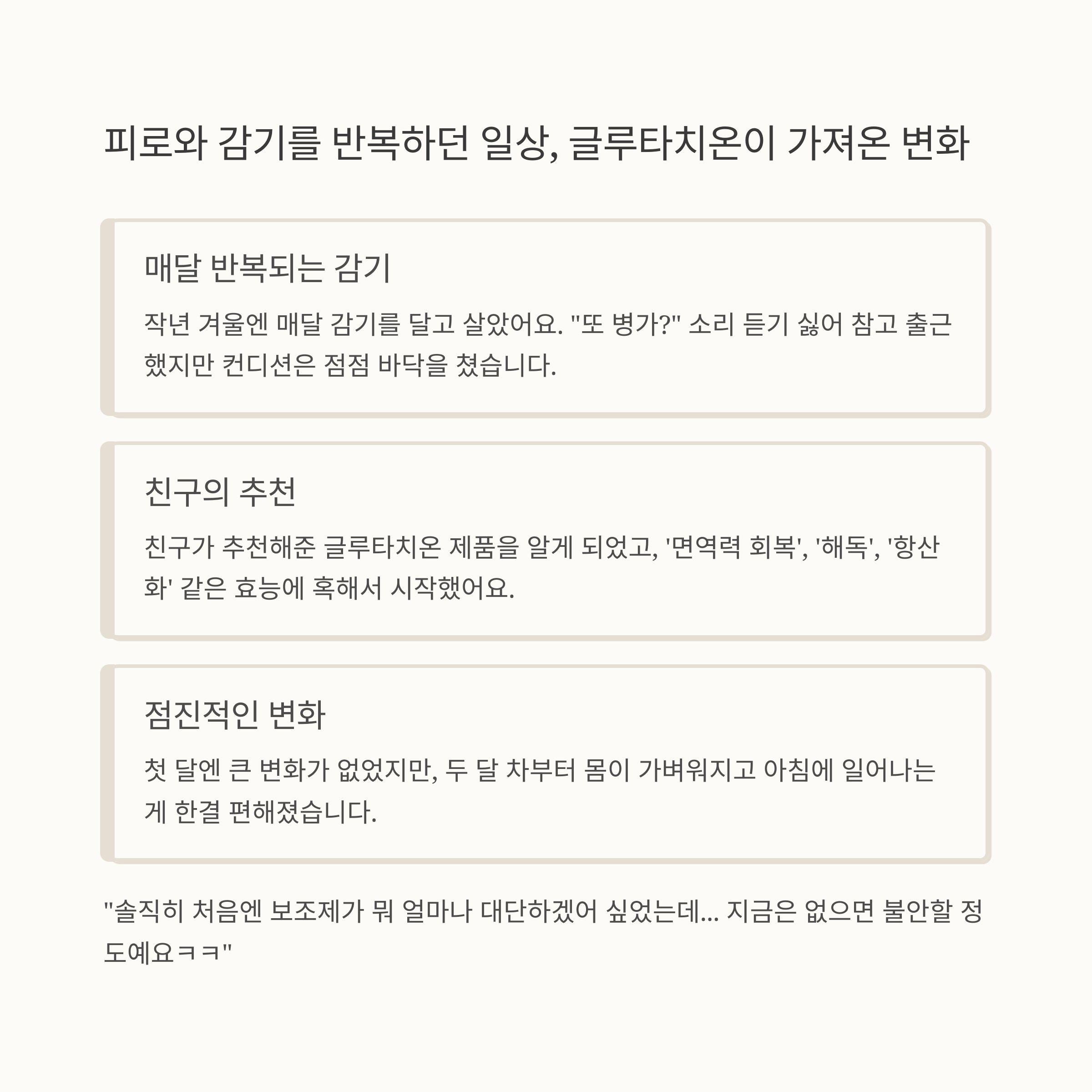 1. 피로와 감기를 반복하던 제게 글루타치온이 생명을 불어넣었어요
