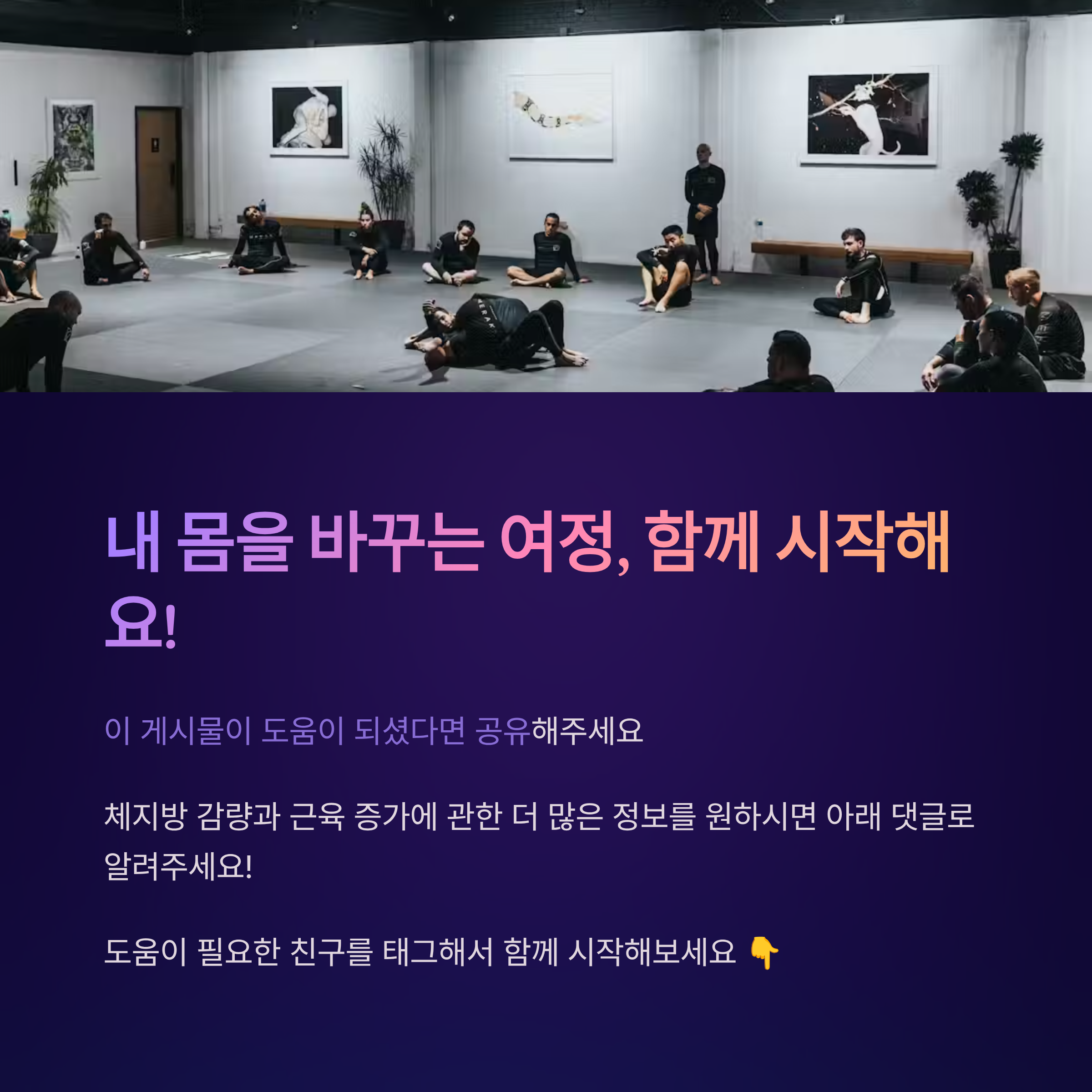 Q: 보충제 없이도 효과를 볼 수 있을까요? A: 물론 가능하지만 프로틴 파우더 정도는 드시는 것을 추천해요. 음식만으로 충분한 단백질을 섭취하기 어렵기 때문입니다.