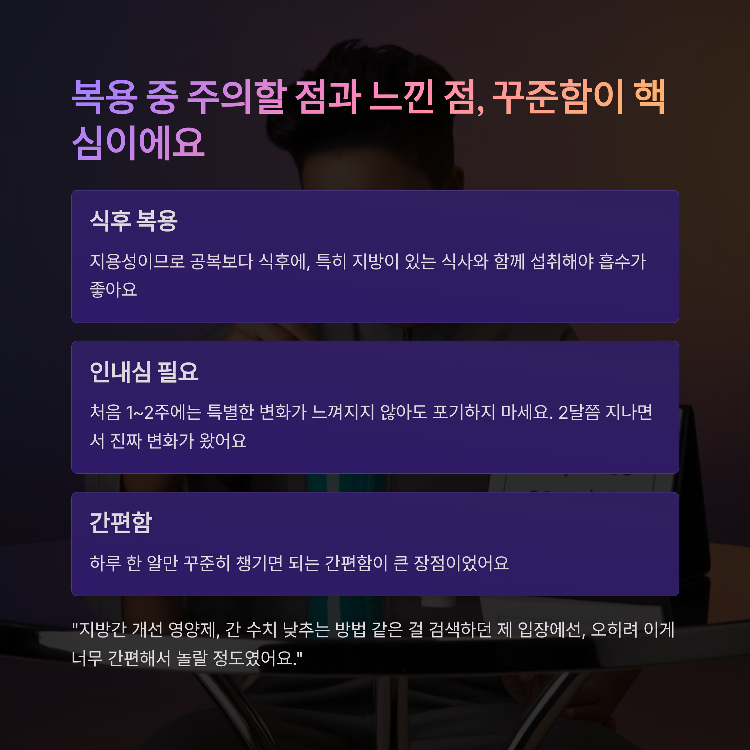 4. 복용 중 주의할 점과 느낀 점, 꾸준함이 핵심이에요