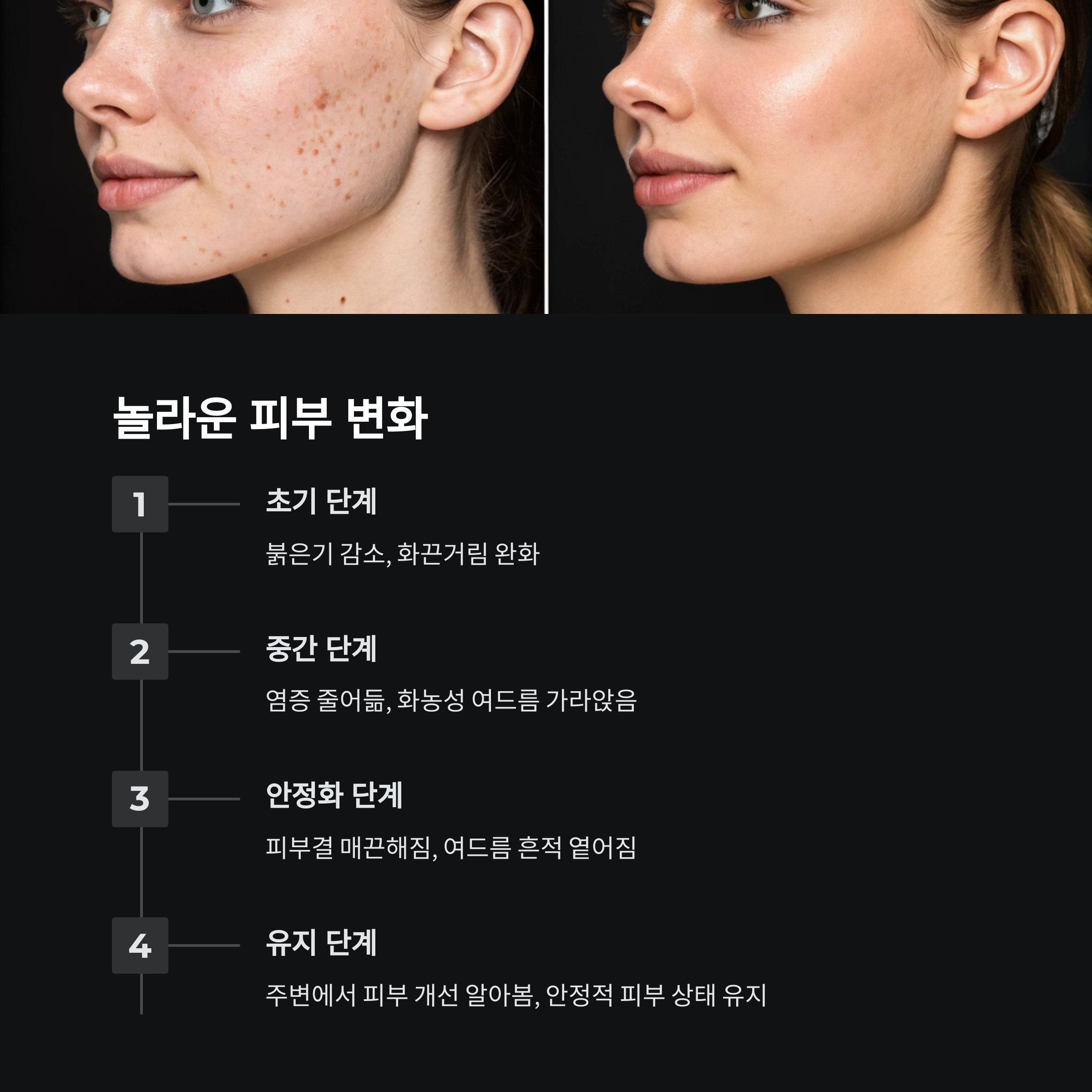 | 4주차 | 피부결 매끈, 여드름 흔적 옅어짐 |