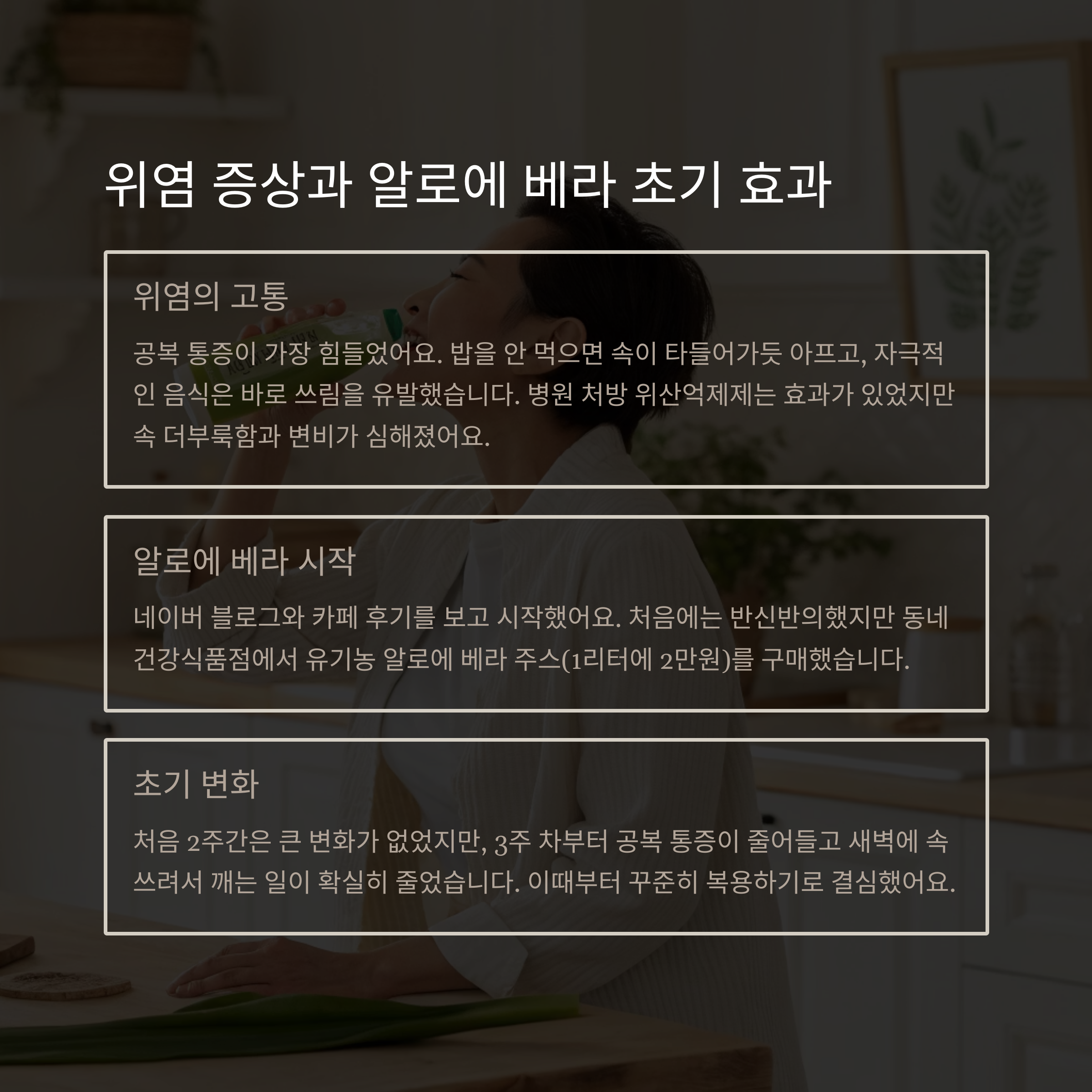 1. 위염으로 고생하다 알로에 베라 찾은 계기와 초반 변화