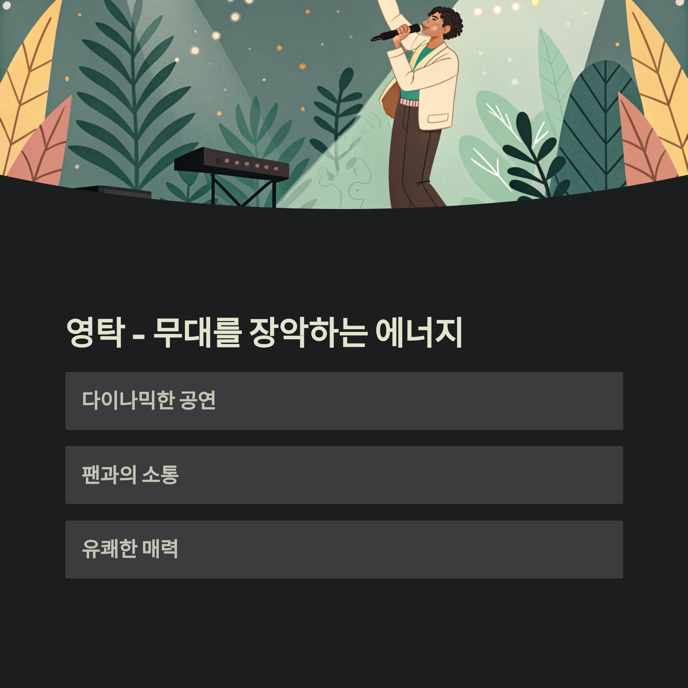 "무대 위 에너지 넘치는 가수 원한다면 영탁 추천!" 이라는 말, 정말 공감해요.