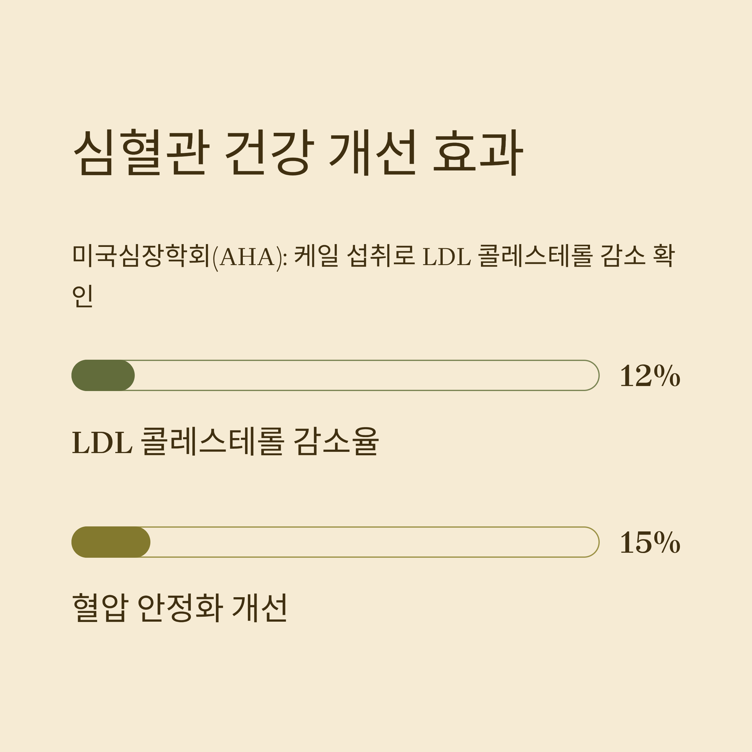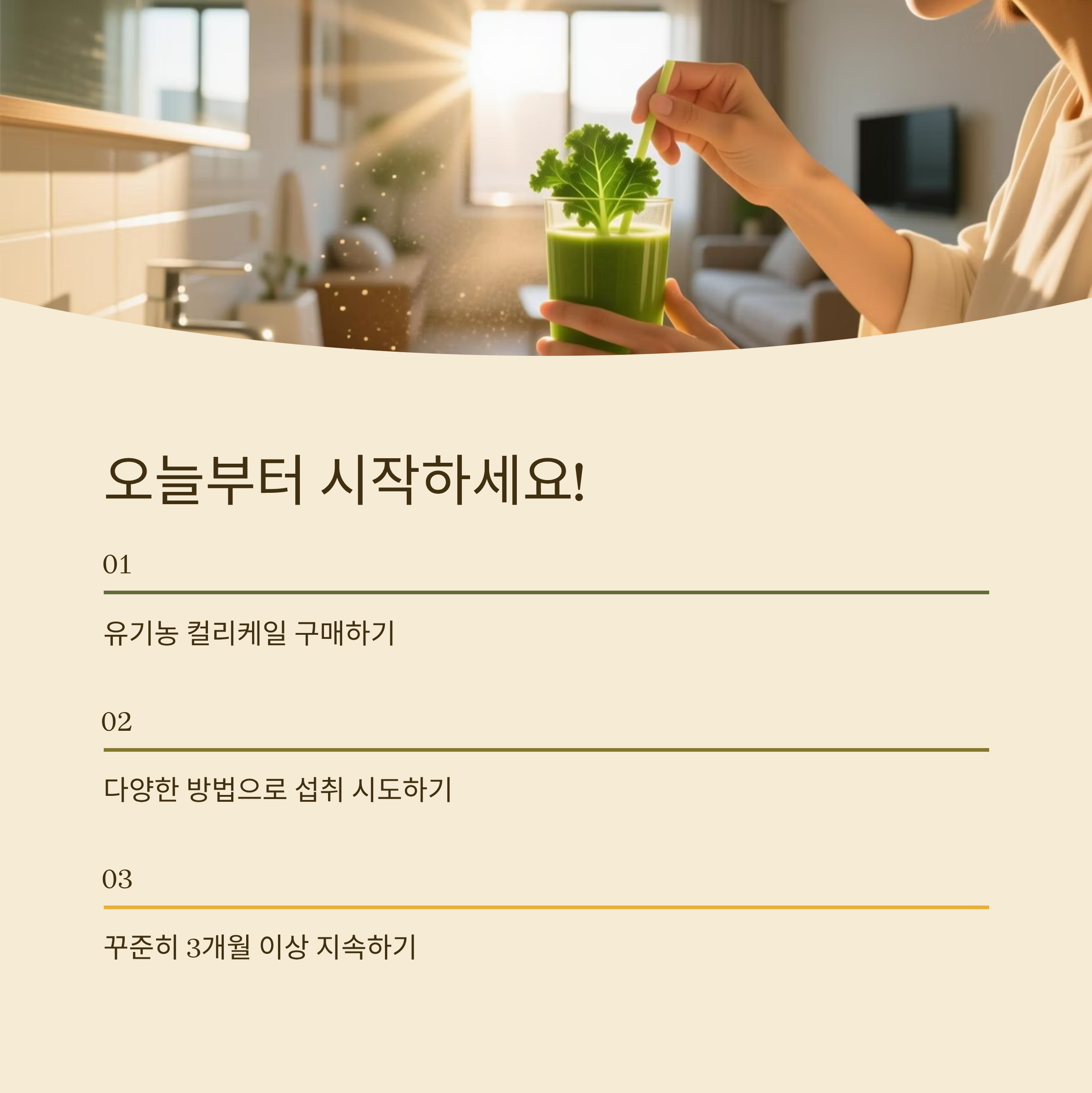 처음 2주 동안은 큰 변화를 못 느꼈지만, 3개월 이상 꾸준히 섭취하니 확실히 달라졌습니다. 혈당 수치가 안정적으로 유지되고, 변비가 줄면서 장 건강이 눈에 띄게 좋아졌습니다. 피로가 줄고 피부가 맑아진 것도 큰 변화였습니다. 미국심장학회(AHA)에서도 케일을 포함한 채소의 꾸준한 섭취가 심혈관 질환 위험을 낮춘다고 밝힌 바 있는데, 실제로 제 LDL 콜레스테롤 수치도 개선되었습니다.