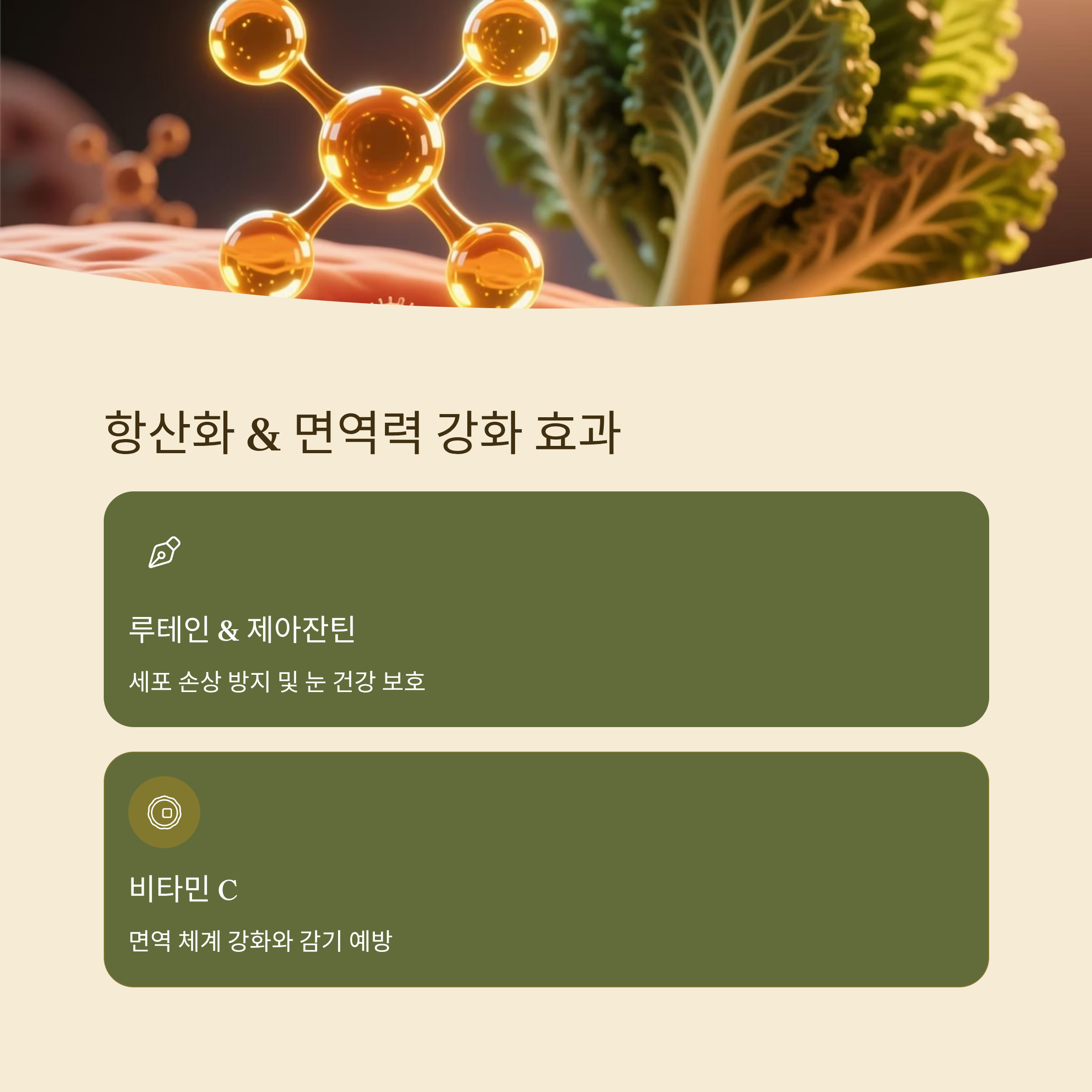 세계보건기구(WHO)는 만성질환 예방을 위해 항산화 성분이 풍부한 채소를 권장합니다. 컬리케일의 루테인, 제아잔틴 같은 성분은 세포 손상을 줄여 암과 노화를 예방합니다. 저는 예전에는 겨울마다 감기를 달고 살았는데, 작년 겨울은 큰 감기 없이 넘어갔습니다. 아이와 함께 먹으니 가족 면역력도 좋아진 듯했습니다ㅋㅋ