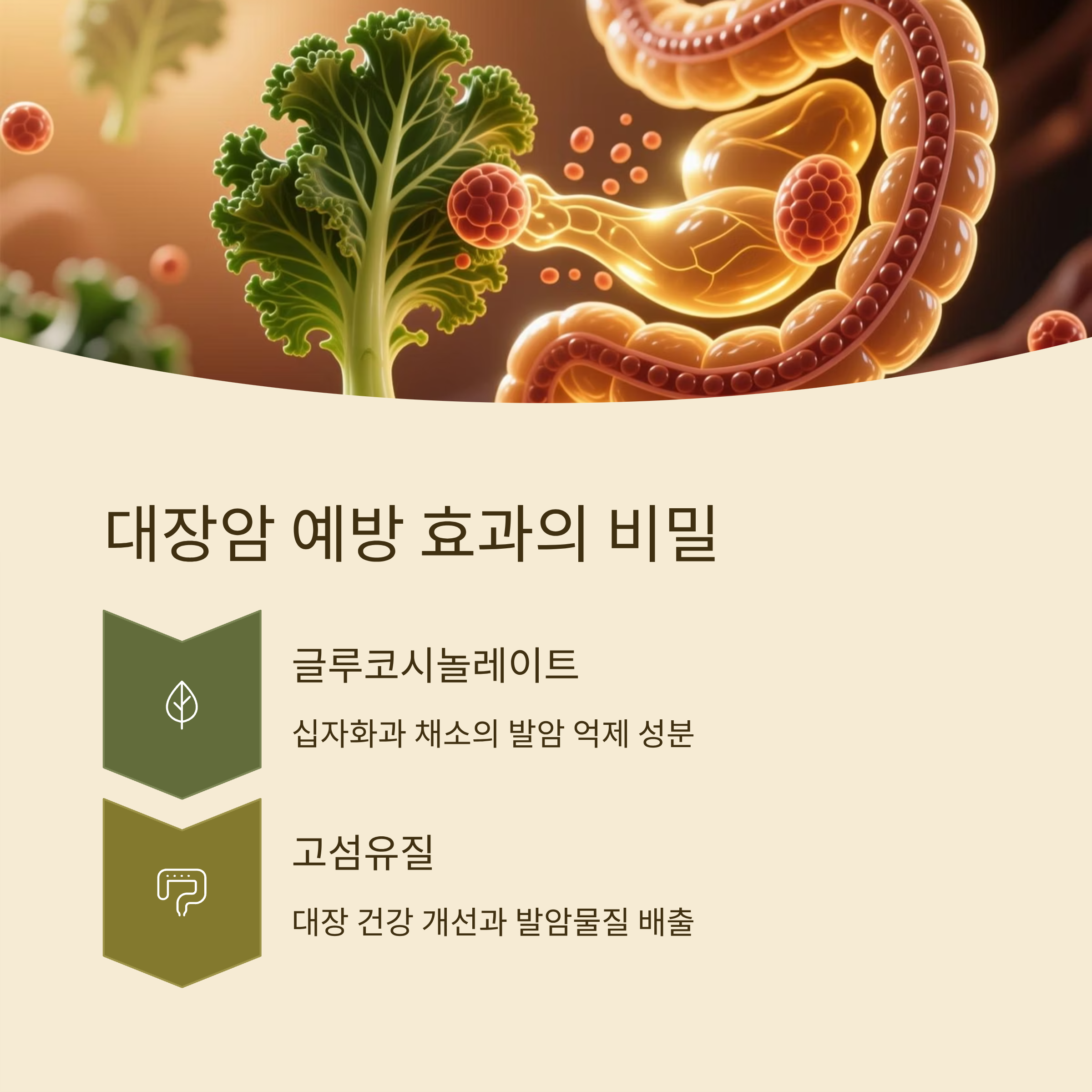 미국암학회(ACS)에서는 고섬유질 채소 섭취가 대장암 발병 위험을 낮출 수 있다고 발표했습니다. 특히 케일과 같은 십자화과 채소는 글루코시놀레이트(Glucosinolate) 성분을 포함해 발암 억제 효과가 있다는 점이 강조되고 있습니다. 세계소화기학회(WGO)에서도 장 건강 관리에 있어 섬유질 섭취가 핵심이라고 말하죠. 저 역시 컬리케일을 꾸준히 먹으면서 배변이 원활해지고, 대장 내시경 검사에서도 이전보다 장이 깨끗하다는 결과를 받아 확신이 생겼습니다.