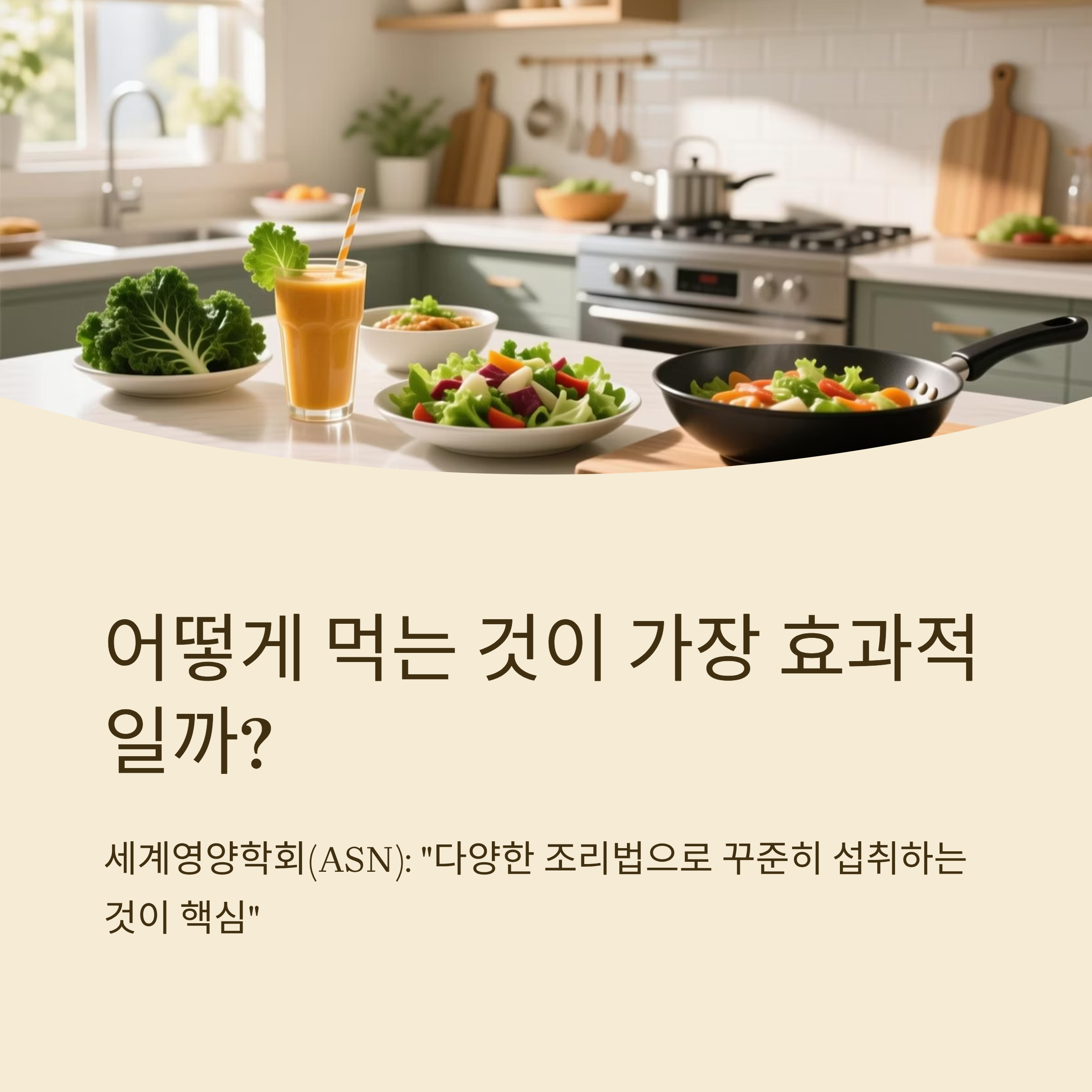 세계영양학회(ASN)에서는 채소 섭취 시 ‘다양한 조리법으로 꾸준히 먹는 것’이 중요하다고 합니다. 저도 실제로 아침에는 바나나와 함께 스무디, 점심에는 샐러드, 저녁에는 살짝 볶음으로 다양하게 섭취했습니다.