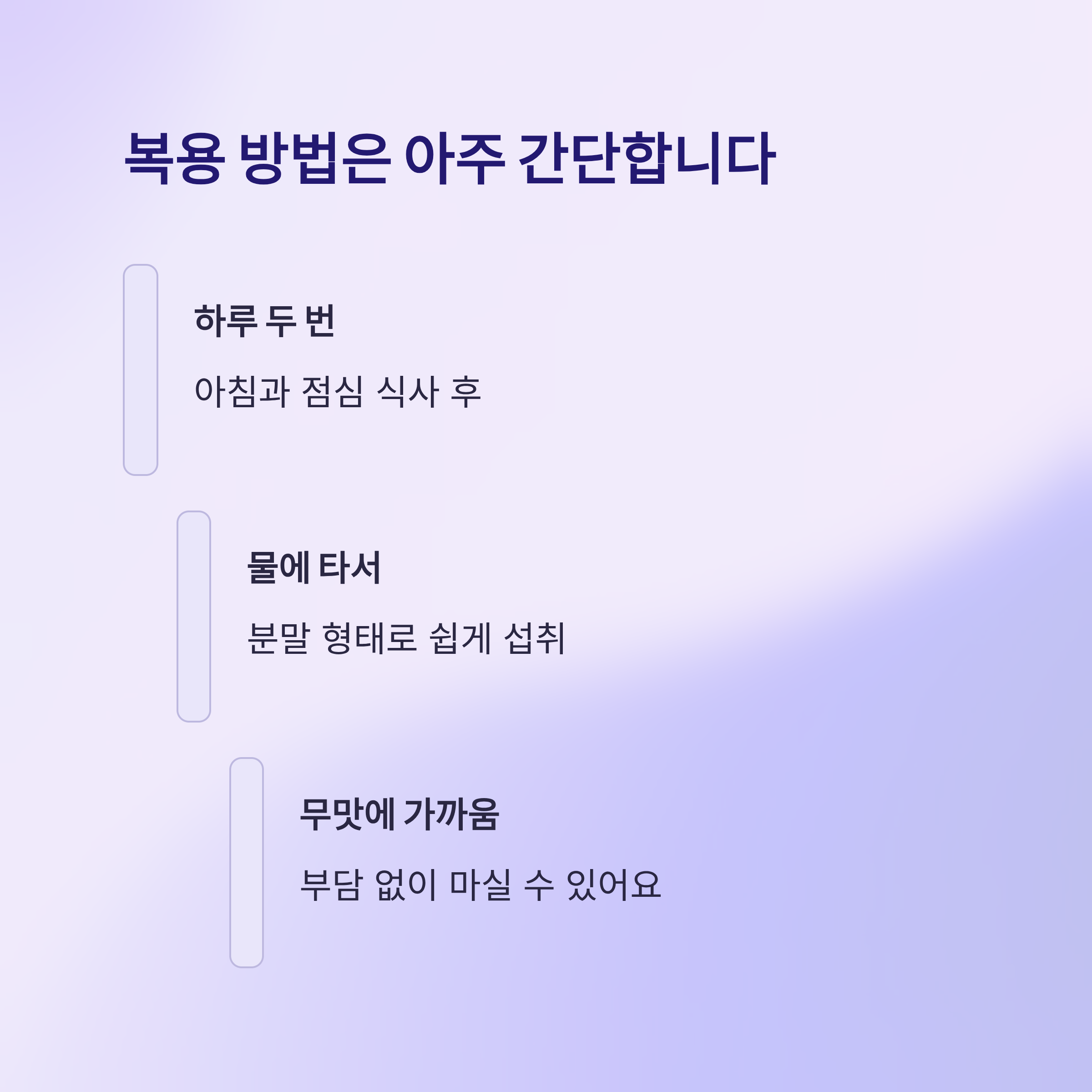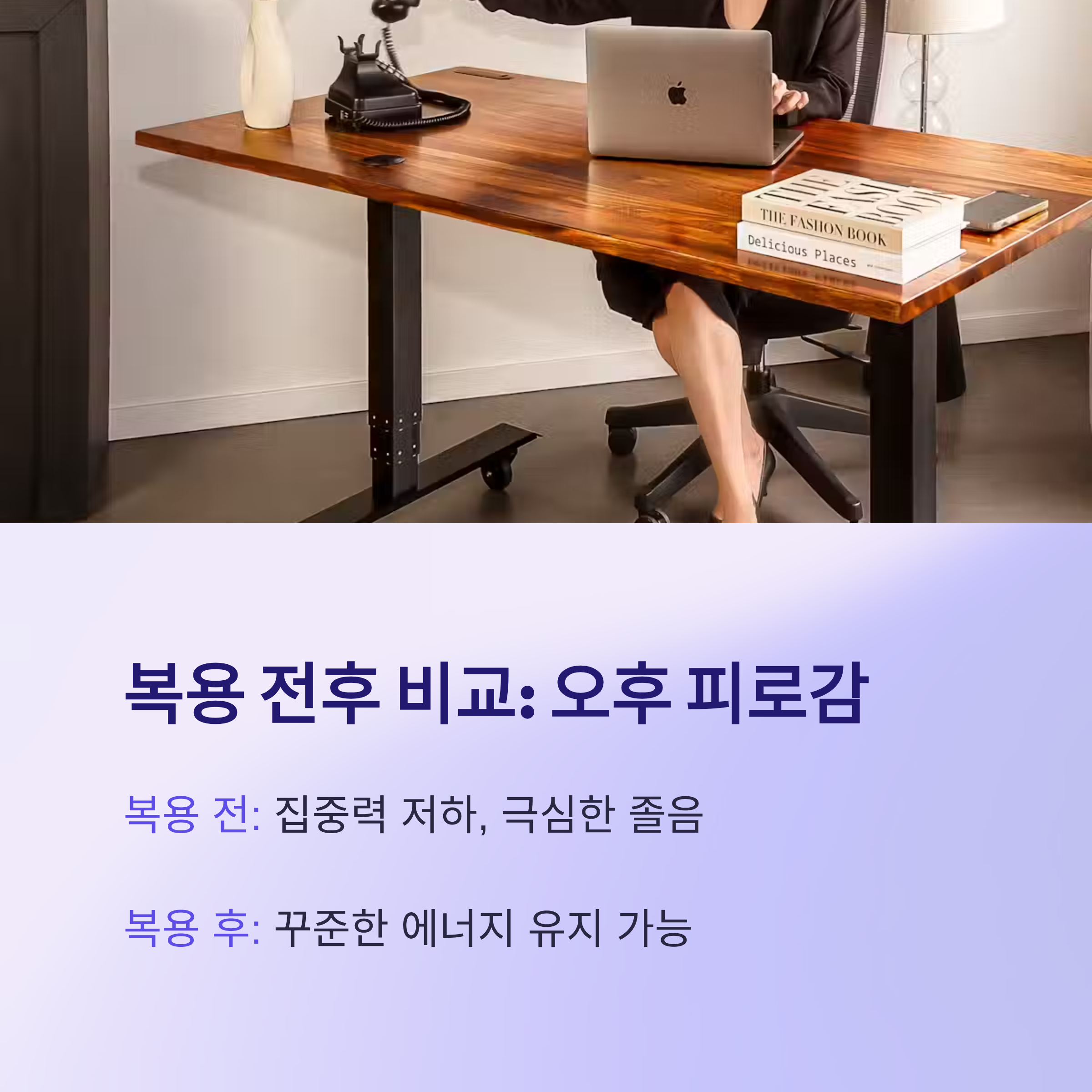 | 오후 피로감 | 집중력 저하, 졸음 | 꾸준한 에너지 유지 |