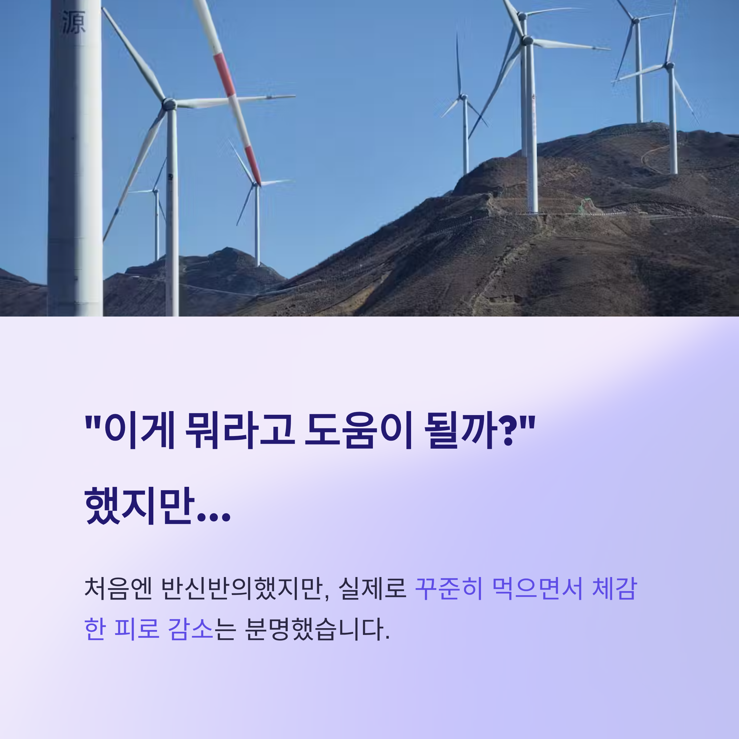 솔직히 말해서 처음엔 "이게 뭐라고 도움이 될까?" 했습니다. 하지만 꾸준히 먹으면서 피로가 줄어든 건 정말 사실이에요. 밤 11시까지 일하고도 예전처럼 몸이 무겁지 않았고, 주말에는 오랜만에 산책도 나가게 됐습니다. 저처럼 만성 피로에 시달리는 분이라면 한 번쯤 시도해 볼 가치가 있다고 생각합니다. 다만, 어디까지나 건강 보조의 성격이라는 점을 기억해야 합니다.