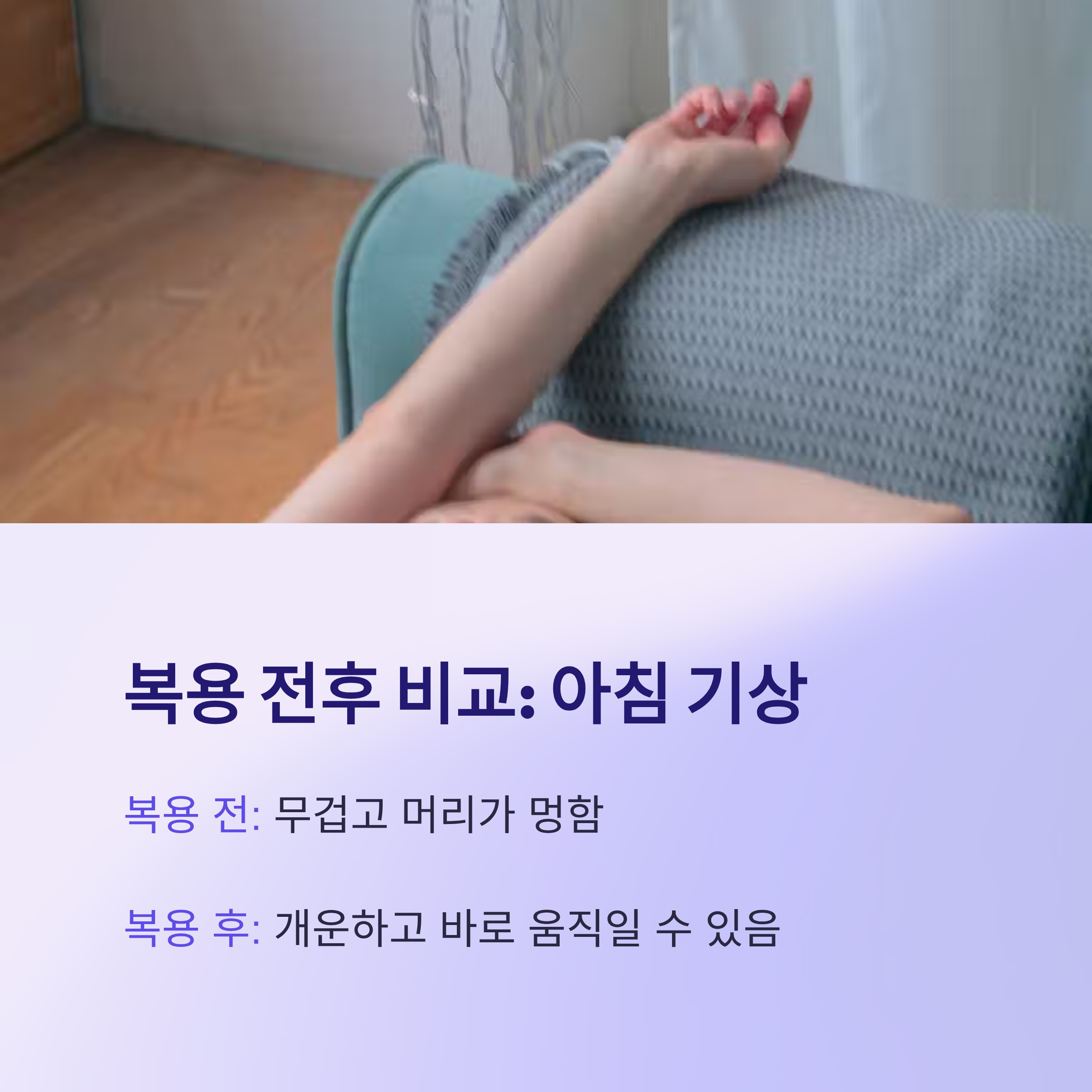 | 아침 기상 | 무겁고 머리가 멍함 | 개운하고 바로 움직일 수 있음 |