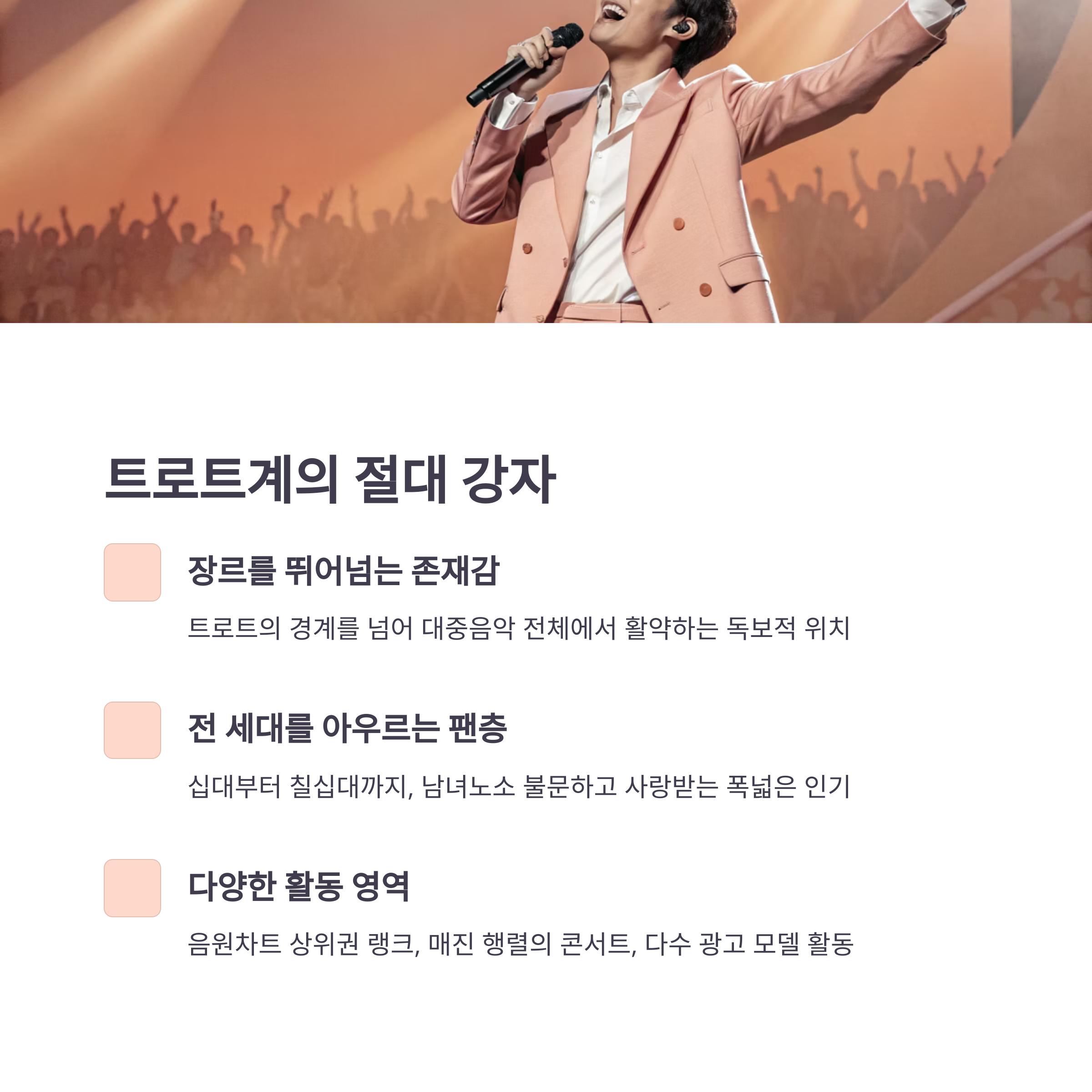 | 2 | 진해성 | 실력 기반, 감성 폭발 무대 | 40~60대 |