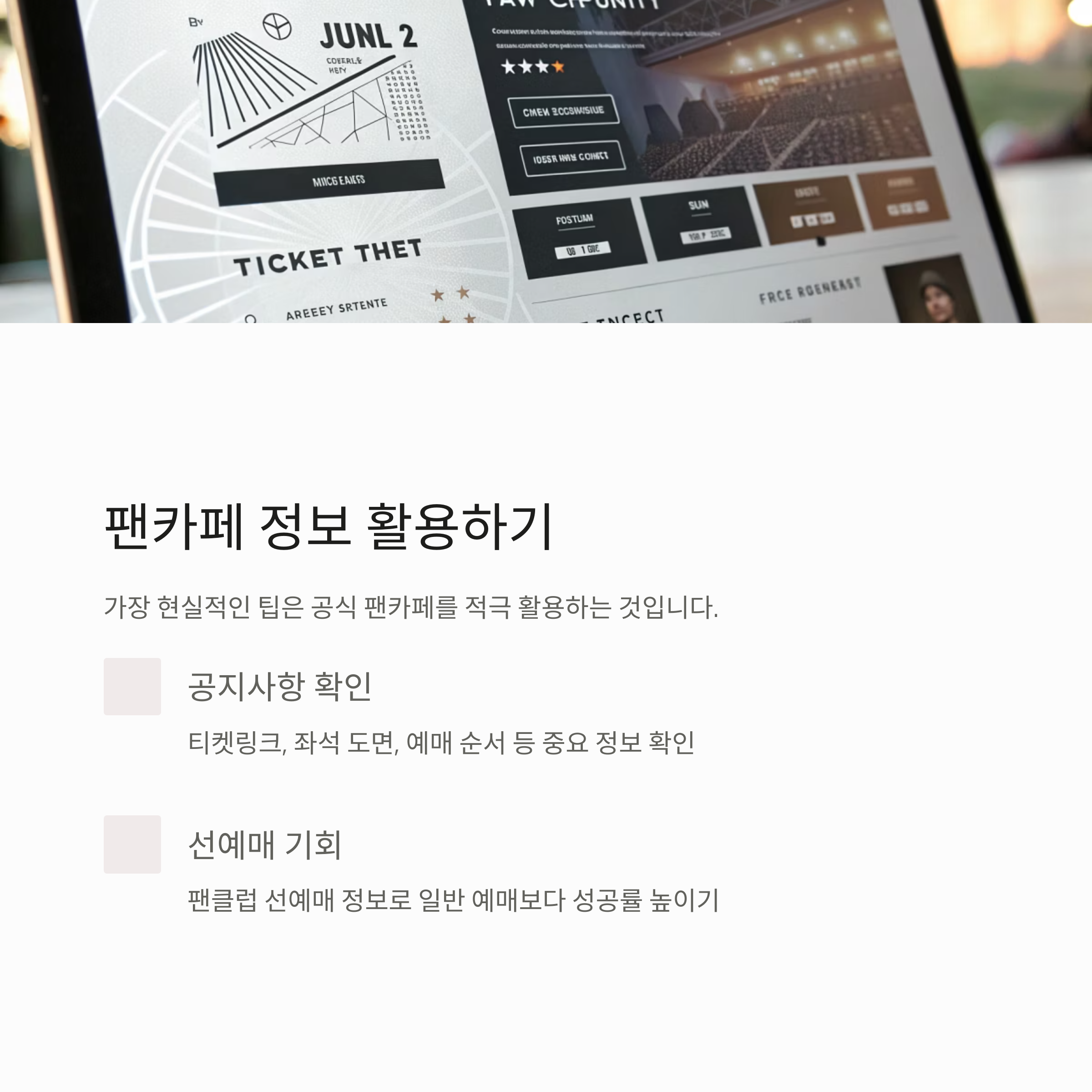 “제가 몰랐을 땐 항상 일반 예매에 밀렸거든요. 근데 팬카페 가입 후 선예매 성공률이 훨씬 높아졌어요. 정보가 곧 티켓입니다.”