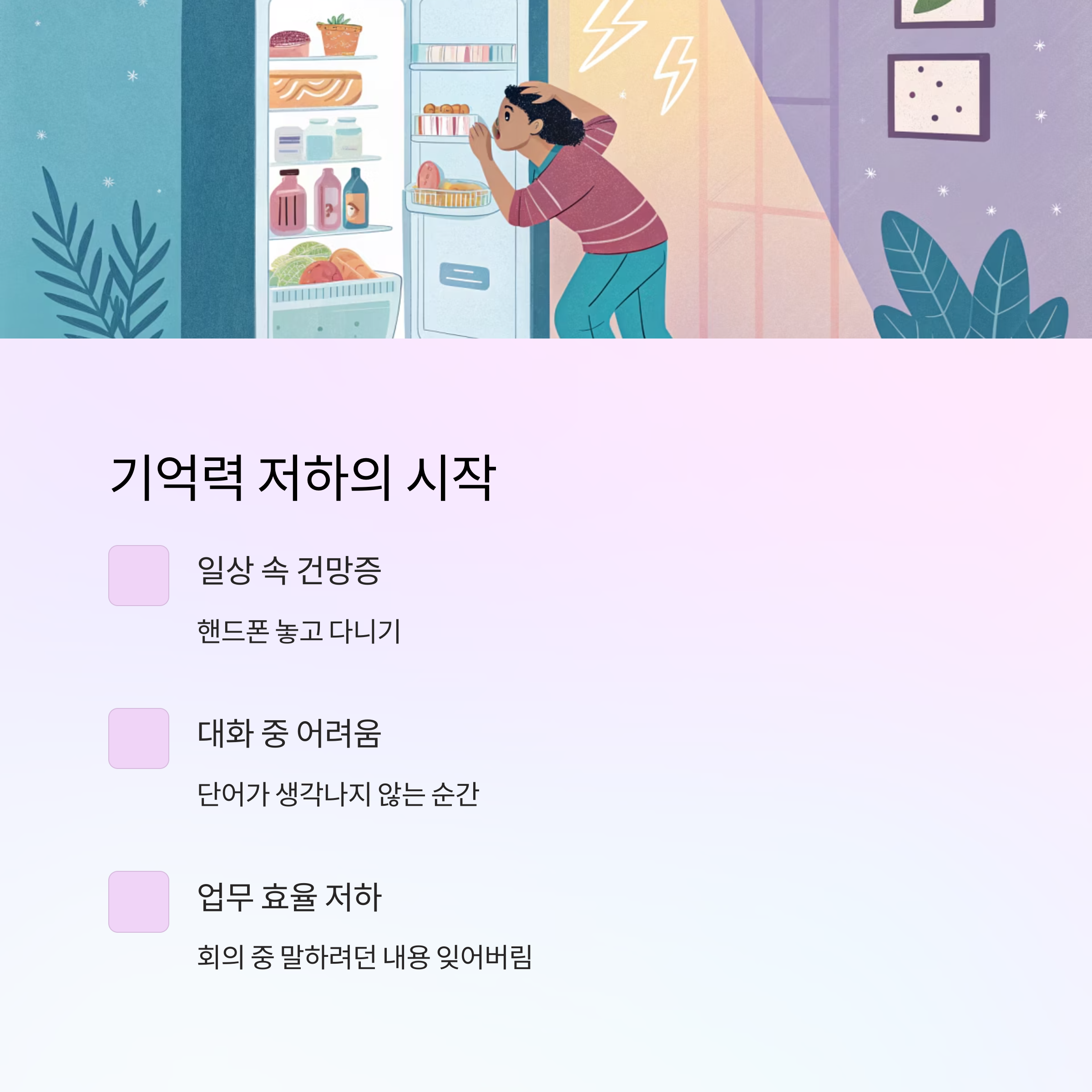 솔직히 말하면 처음엔 건망증이 심해진 걸 스트레스 때문이라고만 생각했어요. 핸드폰 놓고 다니기, 사람 이름이 안 떠오르기, 심지어 문장 중간에 단어가 생각 안 나서 멈추는 일이 잦아졌습니다.