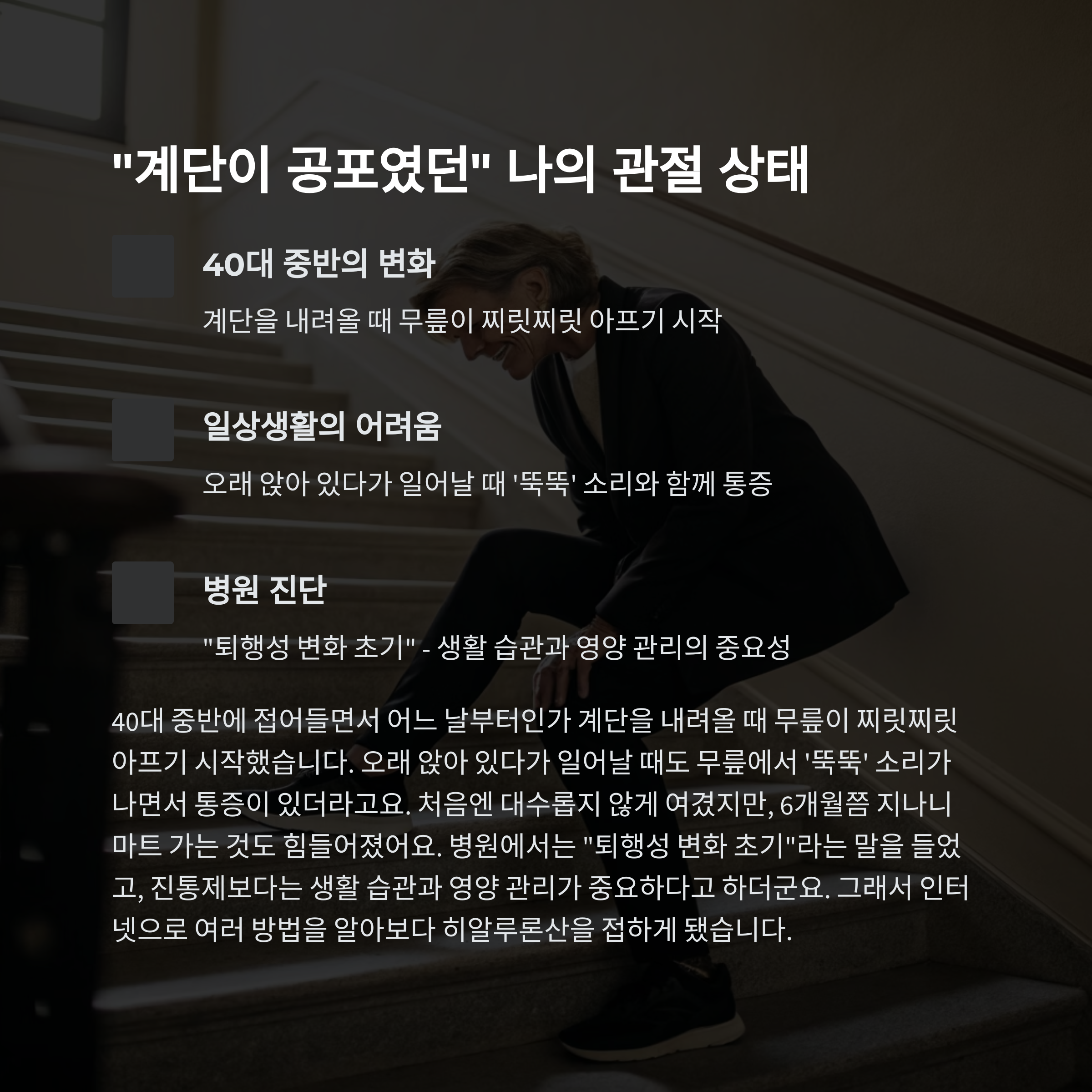 1. "계단이 공포였던" 나의 관절 상태