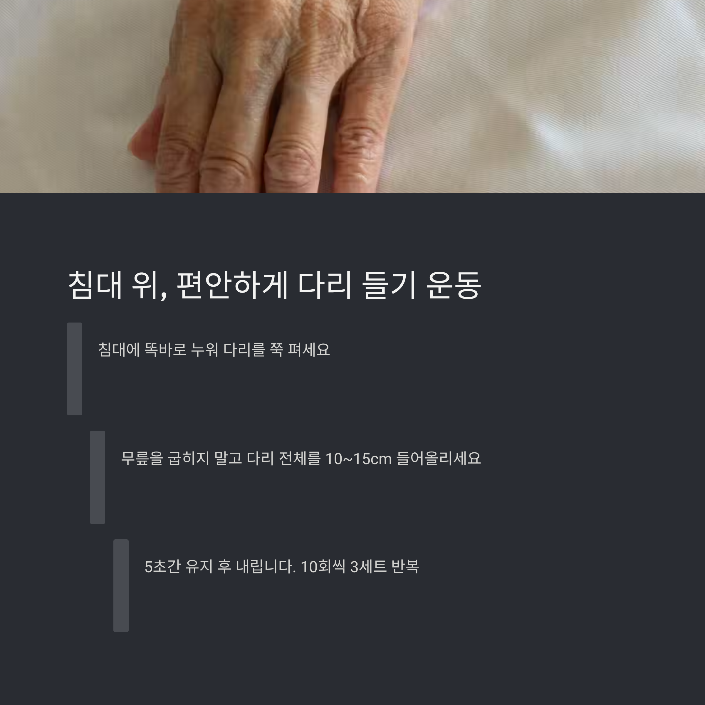 - (여기에 침대 위 다리 들기 운동 이미지 첨부)