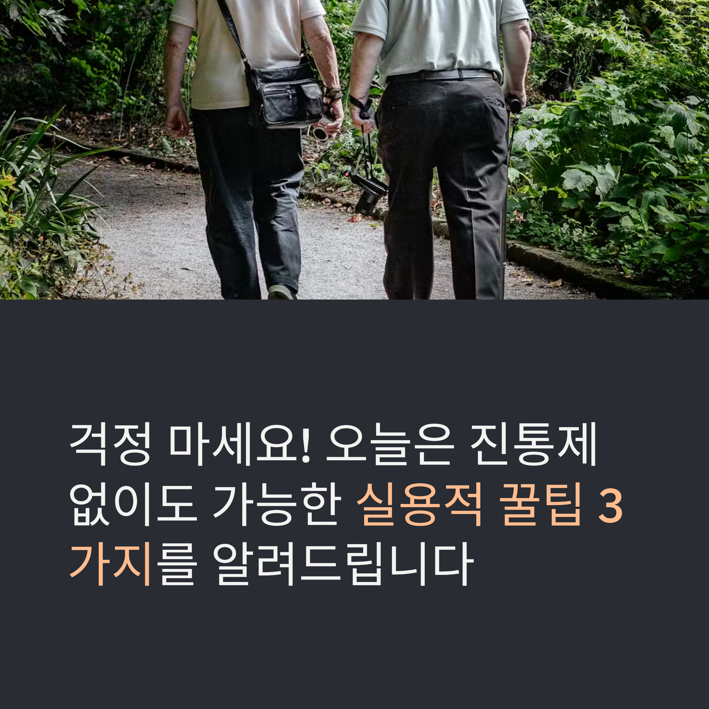 이제 걱정은 NO! NO! 오늘 제가 진통제 없이도 무릎 통증을 확~ 줄여주고, 나아가 무릎 건강을 튼튼하게 지켜줄 수 있는 아주 실용적인 꿀팁 3가지를 알려드릴게요. 젊었을 때처럼 뛰어놀 순 없어도, 통증 없이 편안한 일상! 우리들도 충분히 누리실 수 있습니다! 💪