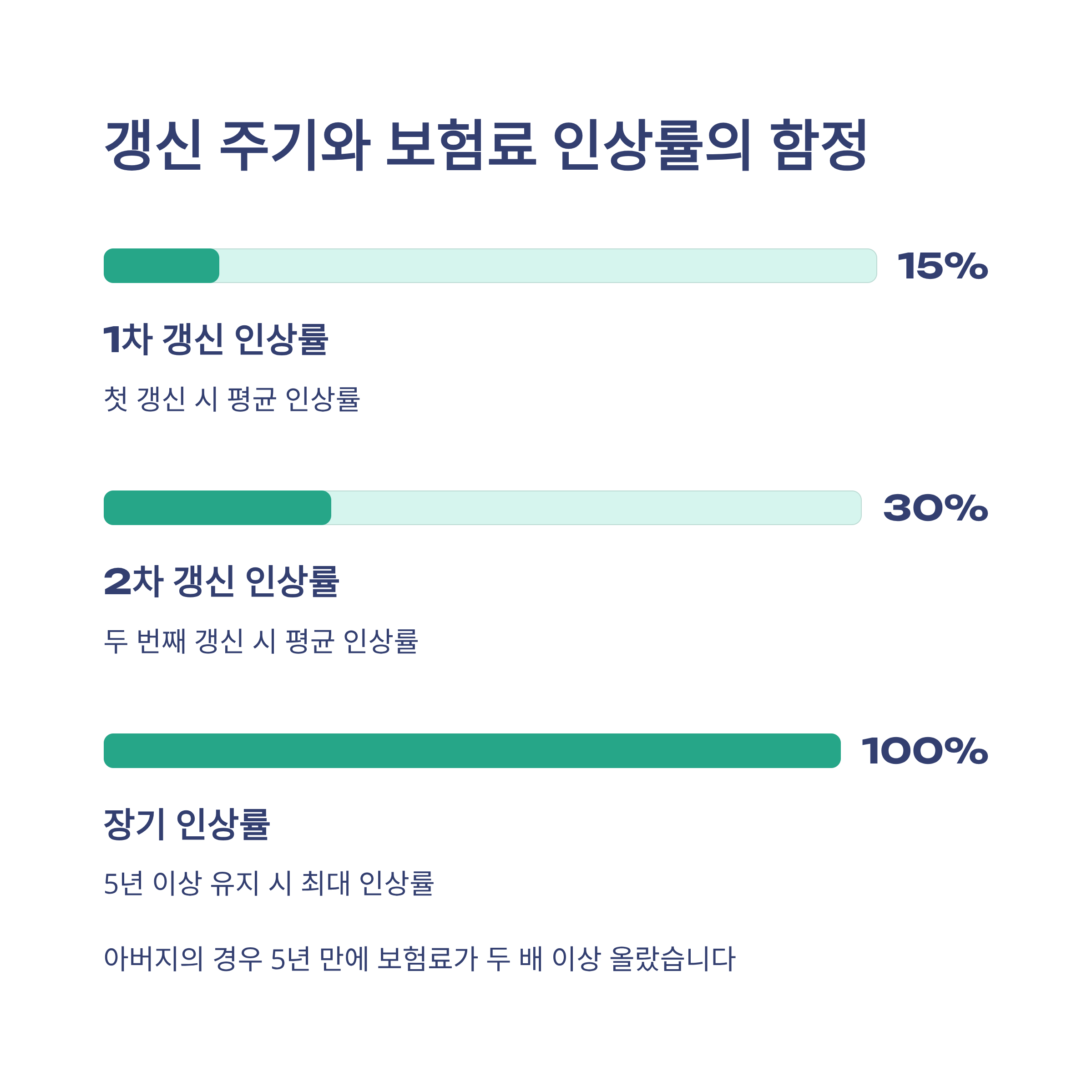 - 갱신 주기와 보험료 인상률: 장기적으로 부담이 커질 수 있습니다.