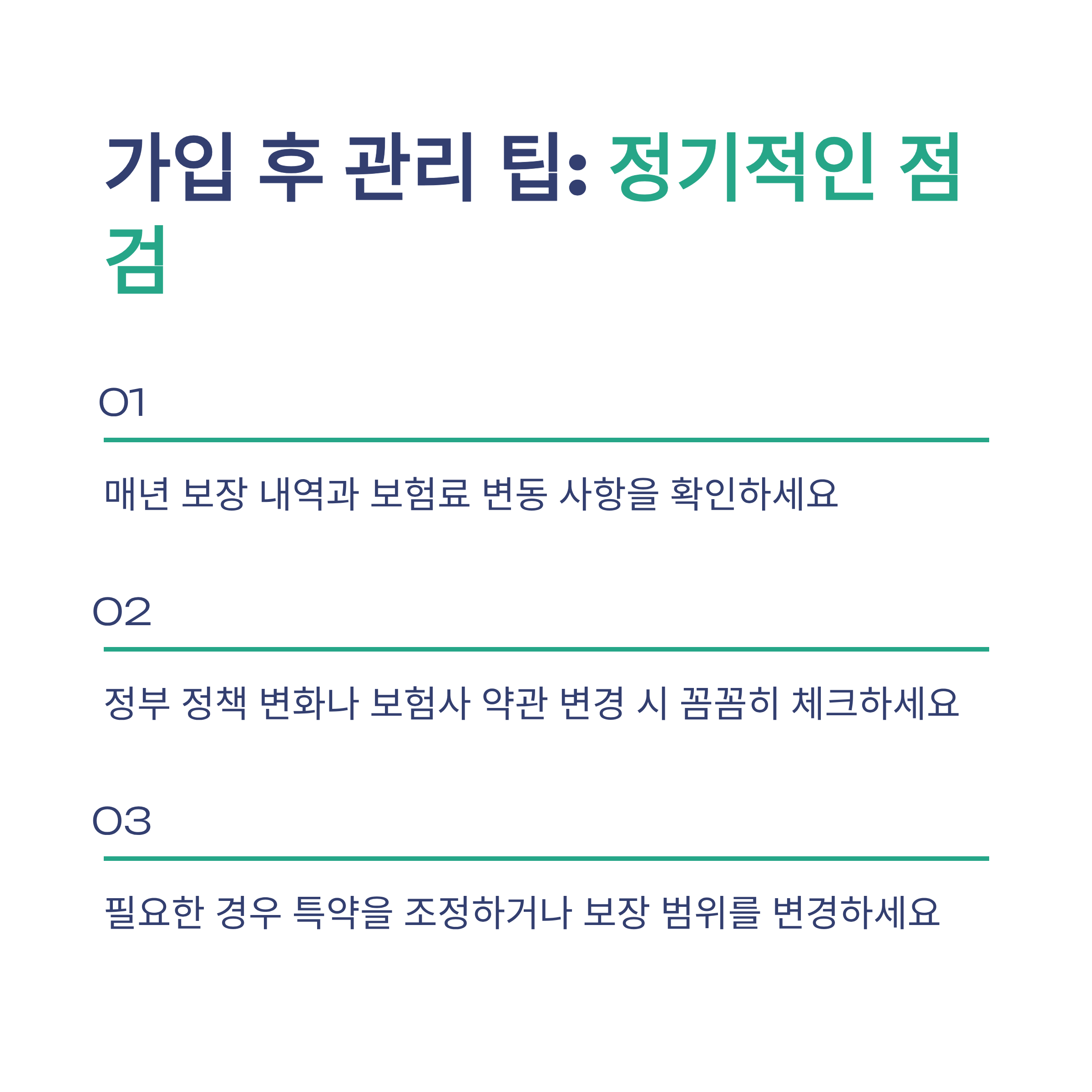 - 정부 정책 변화나 보험사 약관 변경 시 꼭 체크하세요.