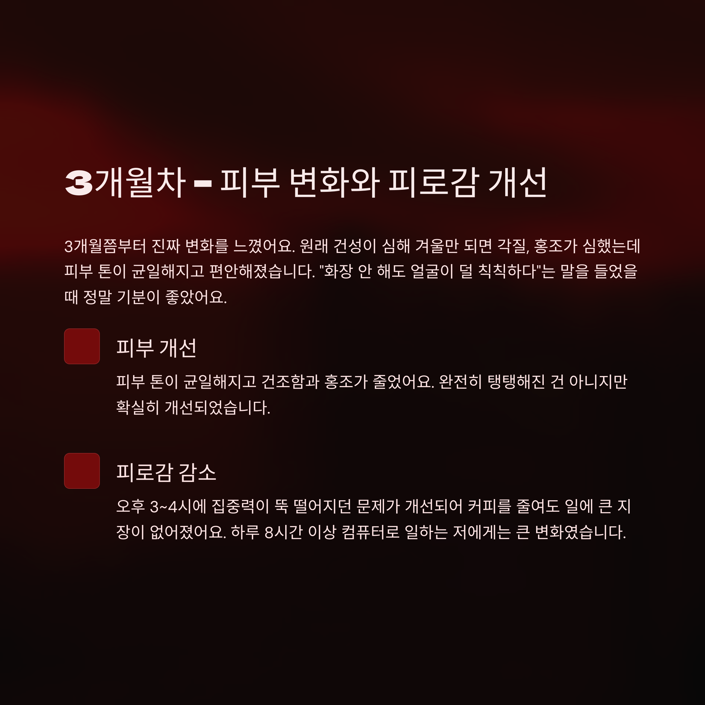 2. 3개월차 – 피부 변화와 피로감 개선 이야기