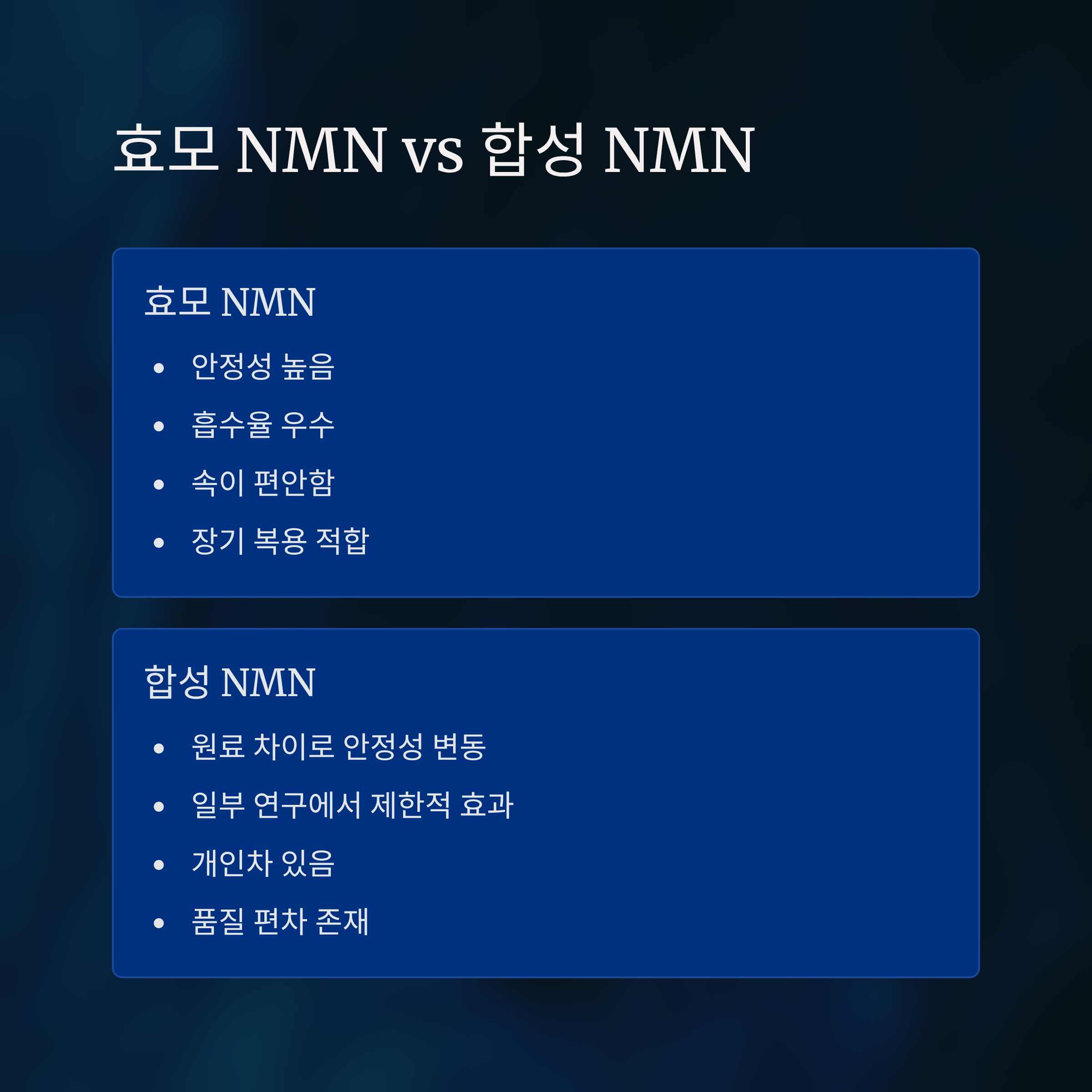 NMN에도 여러 원료가 있는데, 제가 선택한 건 효모 기반 NMN입니다. 국제 학회에서 발표된 자료들을 보면 효모 유래 NMN은 안정성이 높고 흡수율에서도 좋은 결과를 보였다고 합니다. 제가 직접 섭취해 보니 속이 편안하고, 장기 복용에도 부담이 적었습니다. 연구 데이터와 제 경험이 일치한다는 점에서 신뢰가 갔습니다.