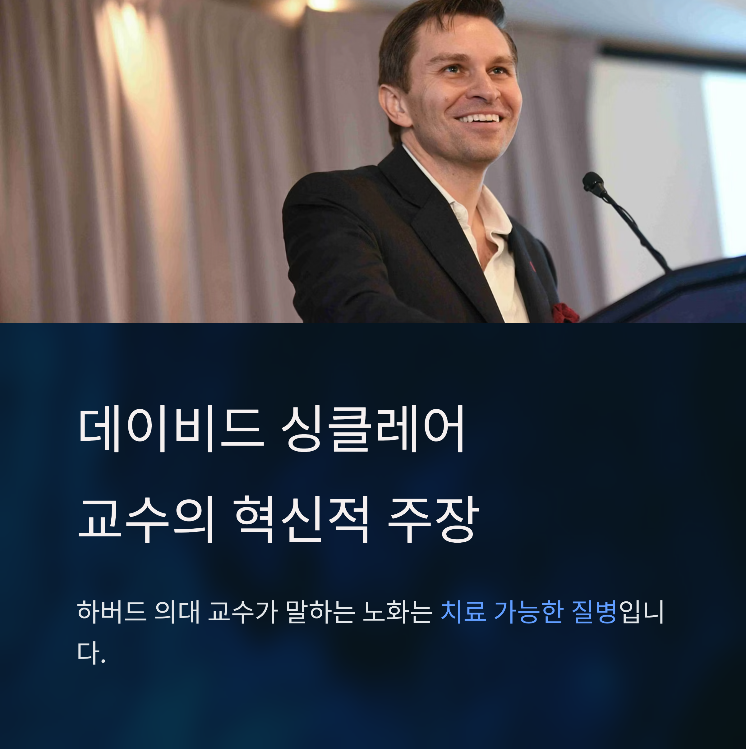 1. 데이비드 싱클레어 교수가 말한 ‘노화는 질병’이라는 패러다임