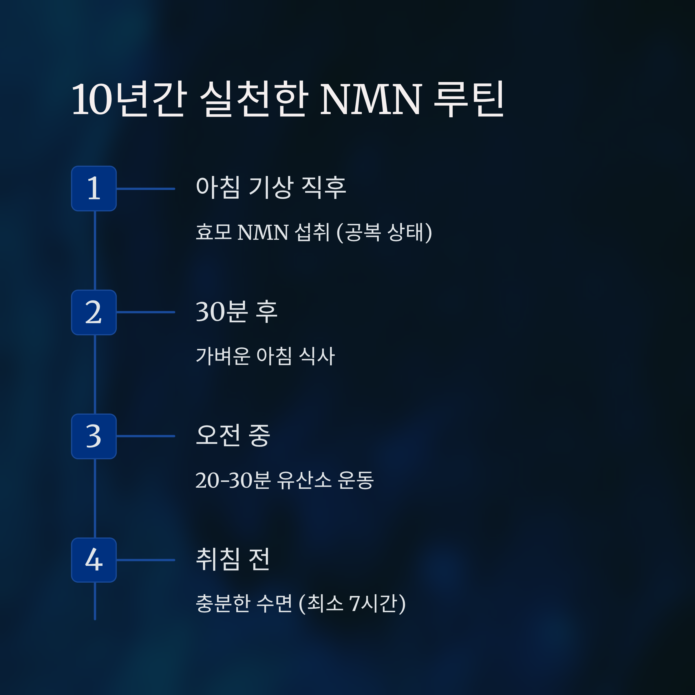 연예계에서도 일부 인사가 NMN을 장기적으로 섭취하는 사례가 소개된 적이 있습니다. 특히 한 연예인 이모씨의 경우 장기간 NMN을 섭취하며 건강 관리 루틴을 공개해 화제가 되기도 했습니다. 저 역시 비슷하게 루틴을 만들었는데, 솔직히 말하면 꾸준히 하는 게 제일 어렵습니다ㅋㅋ 하지만 “꾸준함이 결국 답이다”라는 걸 몸으로 느끼고 있습니다. 신체 자체의 건강을 회복하려면 단발성보다 장기적 실천이 필요하다는 게 제 결론입니다.