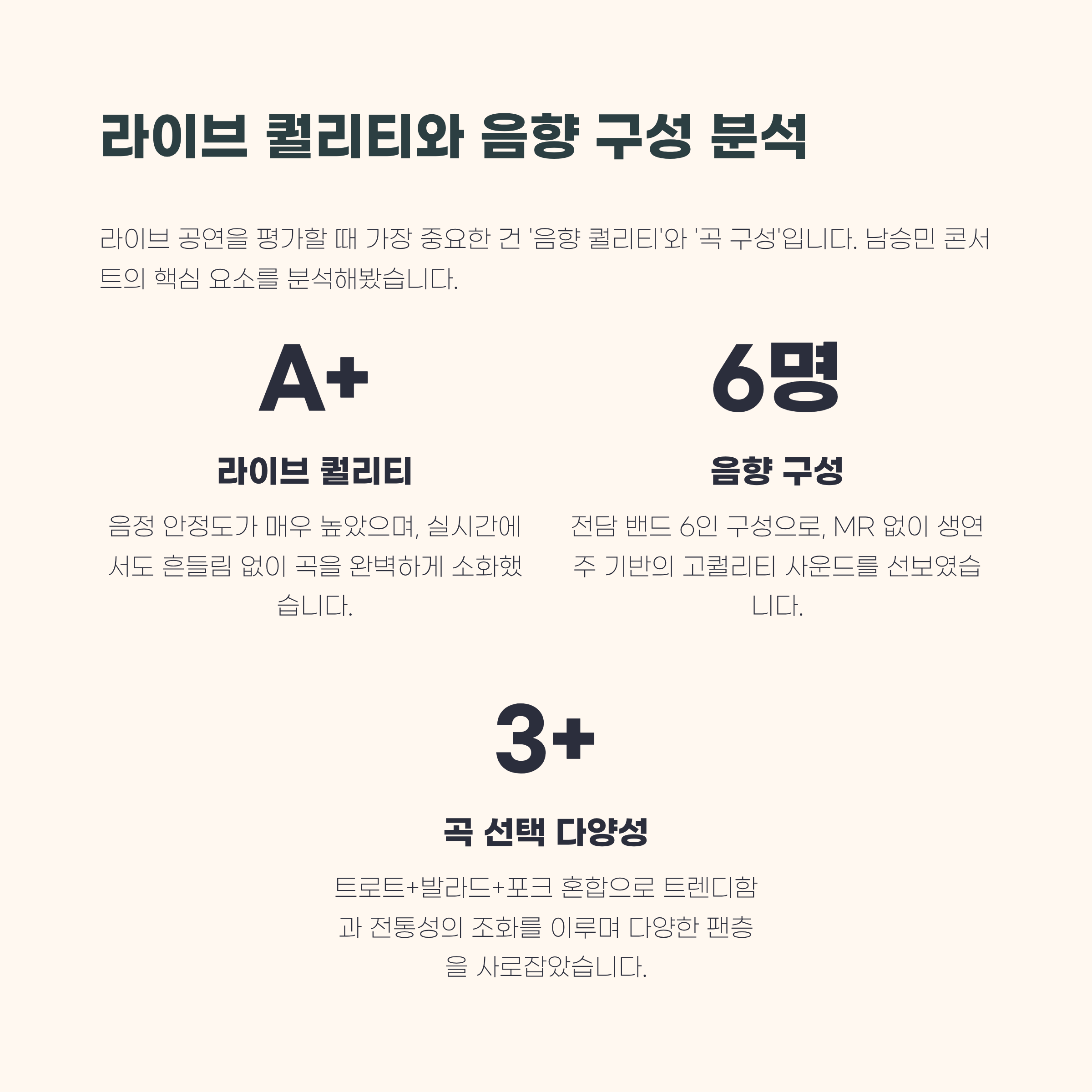 3. 라이브 퀄리티, 음향 구성, 곡 선택까지 분석해봤습니다