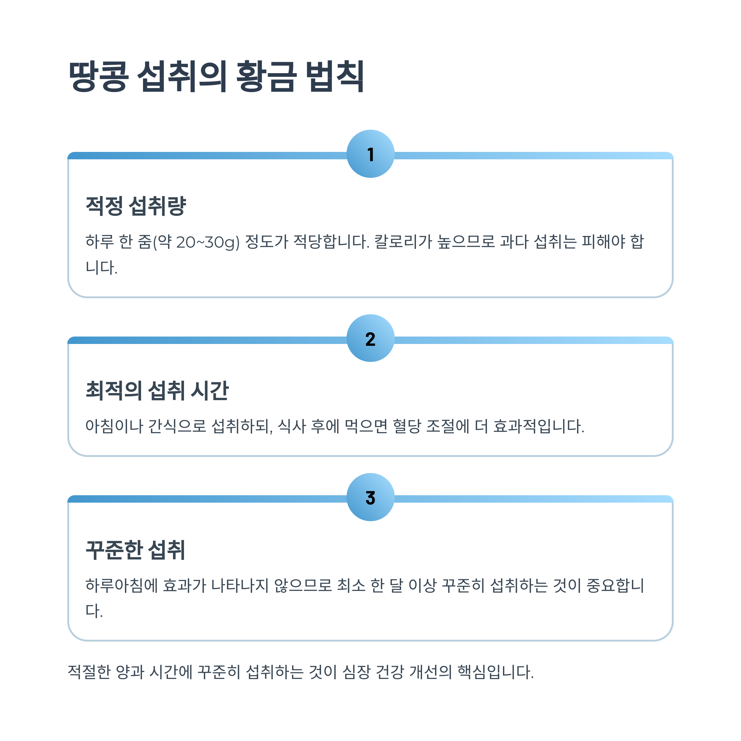 땅콩을 너무 많이 먹으면 칼로리가 높기 때문에, 적당량을 섭취하는 것이 중요해요. 저는 하루에 한 줌(약 20~30g) 정도를 아침 또는 간식으로 먹었고, 식사 후에 먹으면 더욱 효과적이었습니다. 식사 후에 먹으면 배고픔을 덜 느끼게 도와주고, 혈당 조절에도 도움이 되었습니다.