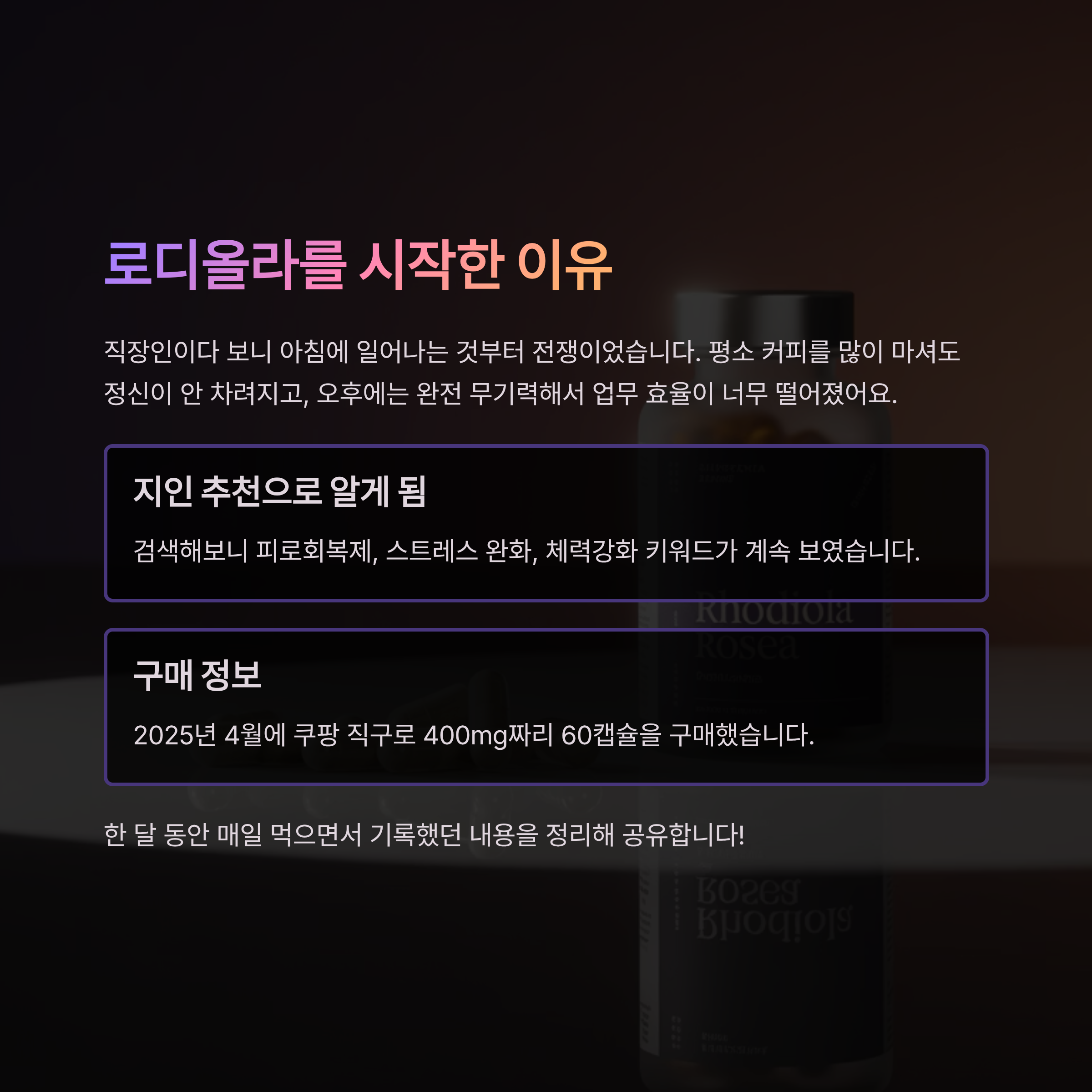 로디올라 30일 먹고 체력이 되살아난 진짜 후기 – 부작용, 효과, 구매팁까지
