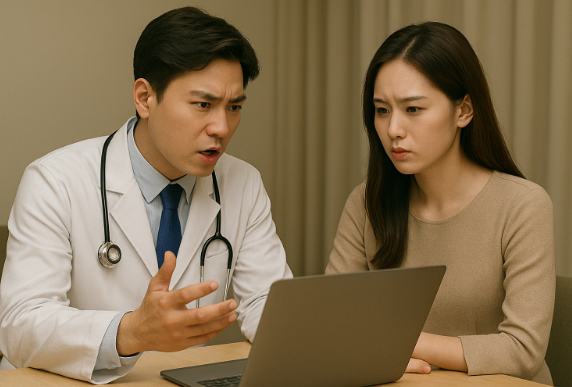 수진과 민우는 소파에 나란히 앉았어요. 병원이라는 공간이 주는 긴장감. 언제든 누군가 들어올 수 있다는 두려움. 하지만 그 두려움조차 두 사람에게는 자극이 됐어요.