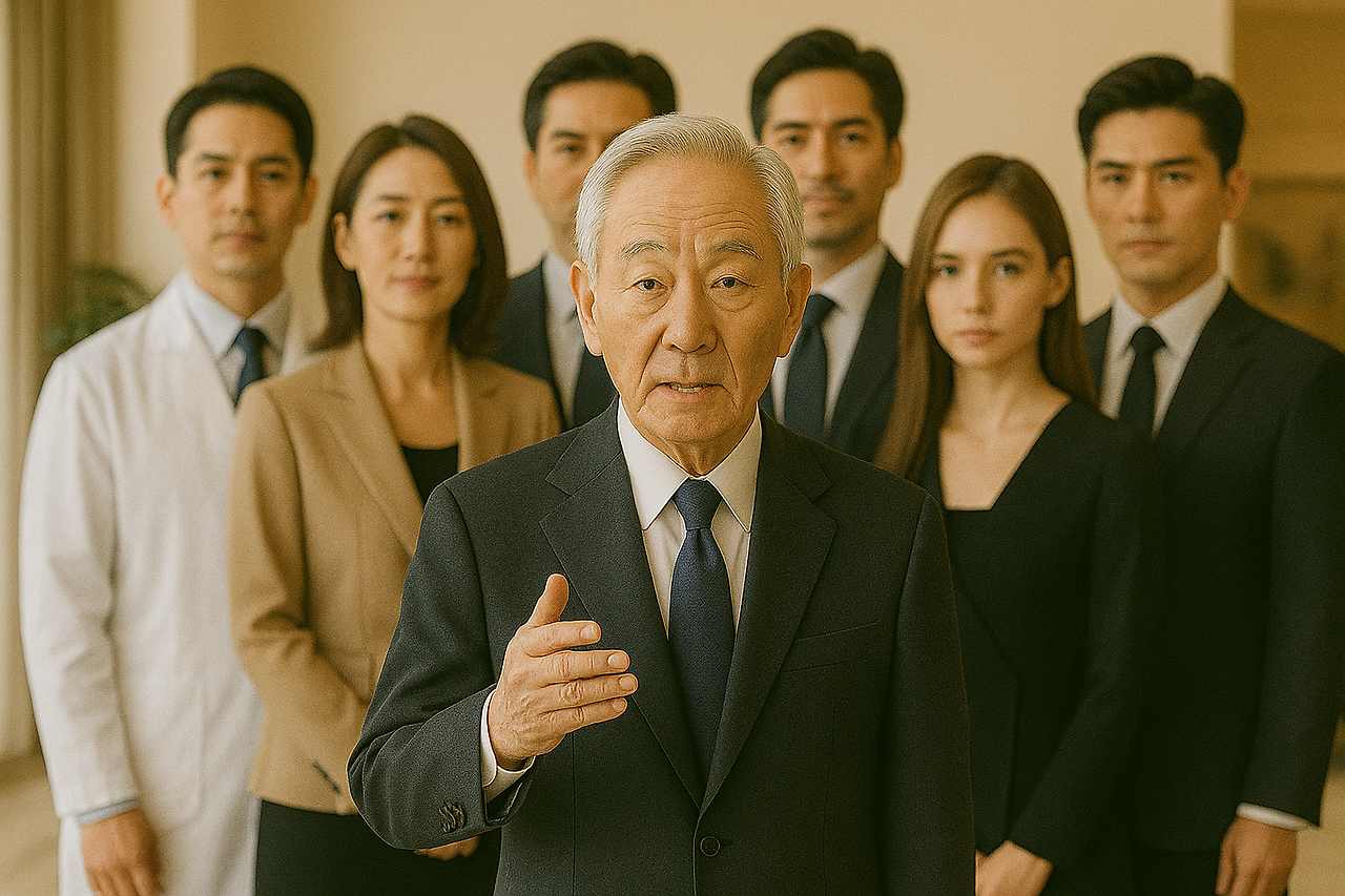 월요일 아침, 성도병원 대회의실에 이사진과 주요 보직자들이 모였어요. 강철수 회장이 단상에 올라 마이크를 잡았어요.