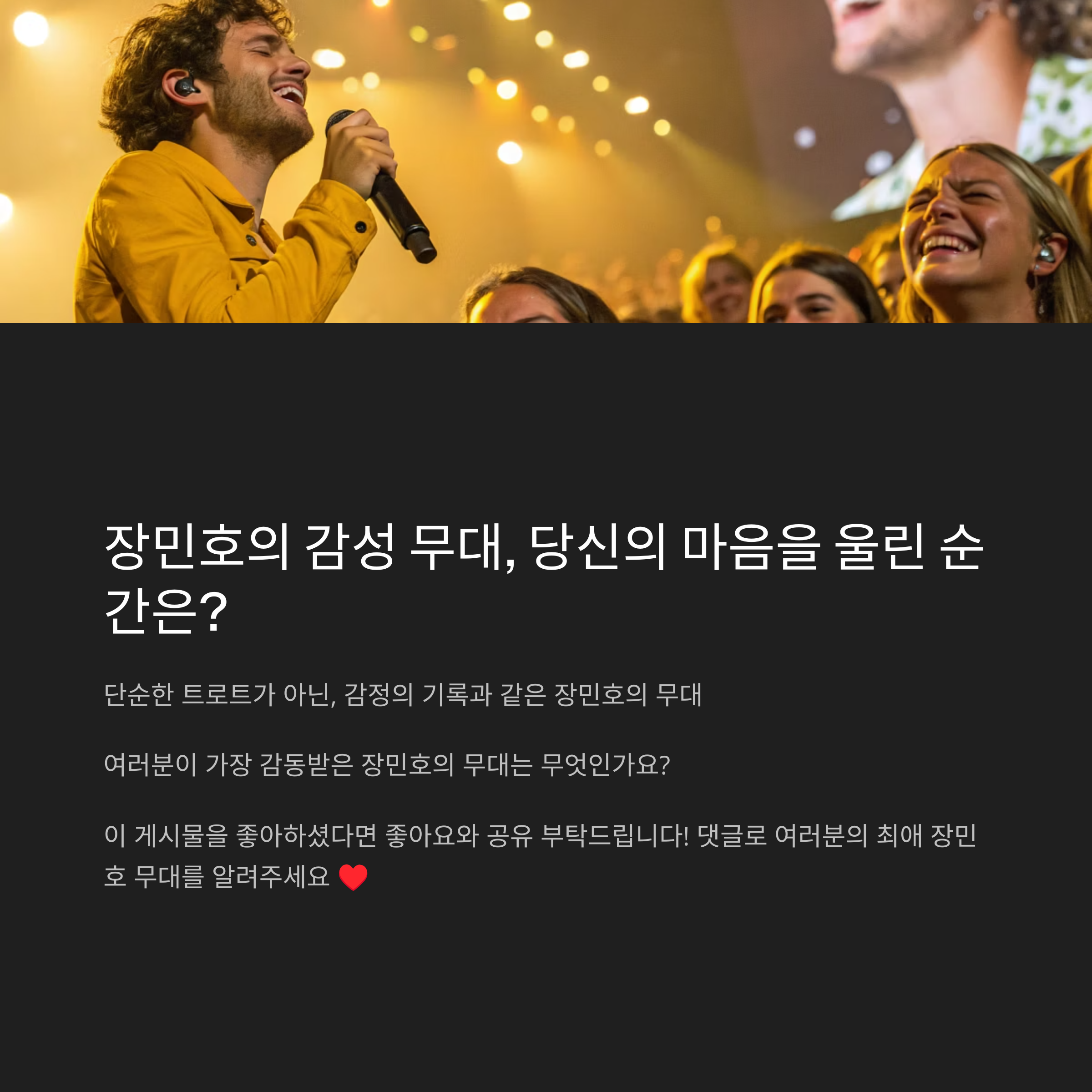 2022년 단독 콘서트에서 직접 이 곡을 들었을 때, 뒷자리에 앉은 분이 “우리 아빠 생각나서 눈물이 나네요”라고 하시더라고요. 민호 씨도 이 곡 부를 땐 항상 살짝 눈을 감고 부르는데, 그게 진심이 느껴져서 너무 인상 깊었어요.