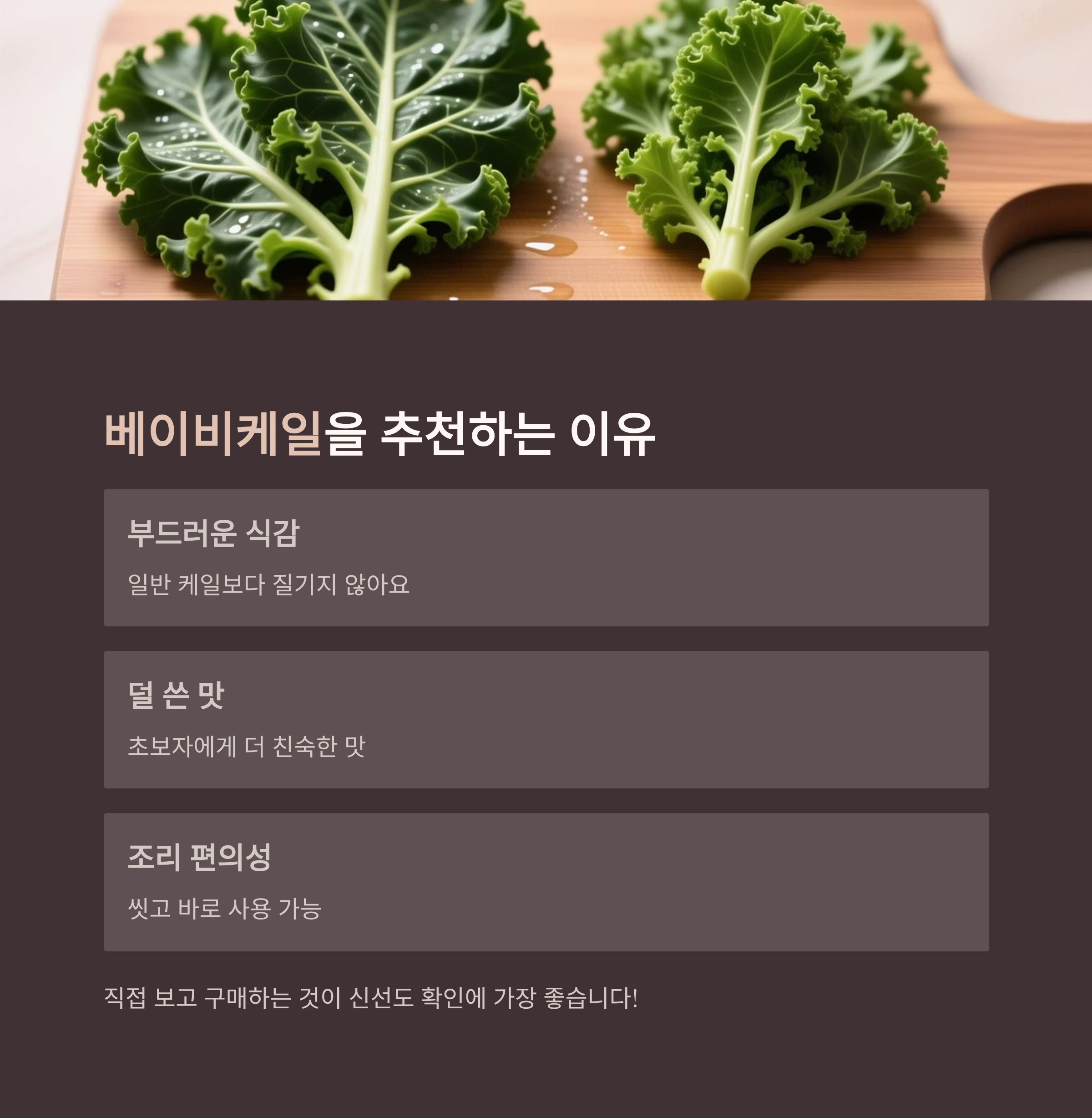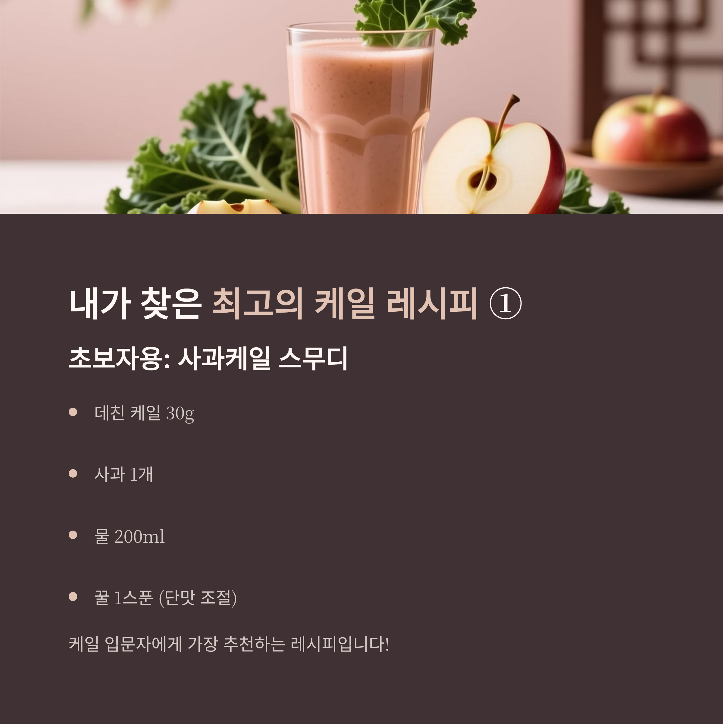 Q: 케일 대신 다른 채소는 안 될까요? A: 브로콜리나 시금치도 좋지만, 영양소 밀도는 케일이 더 높아요.