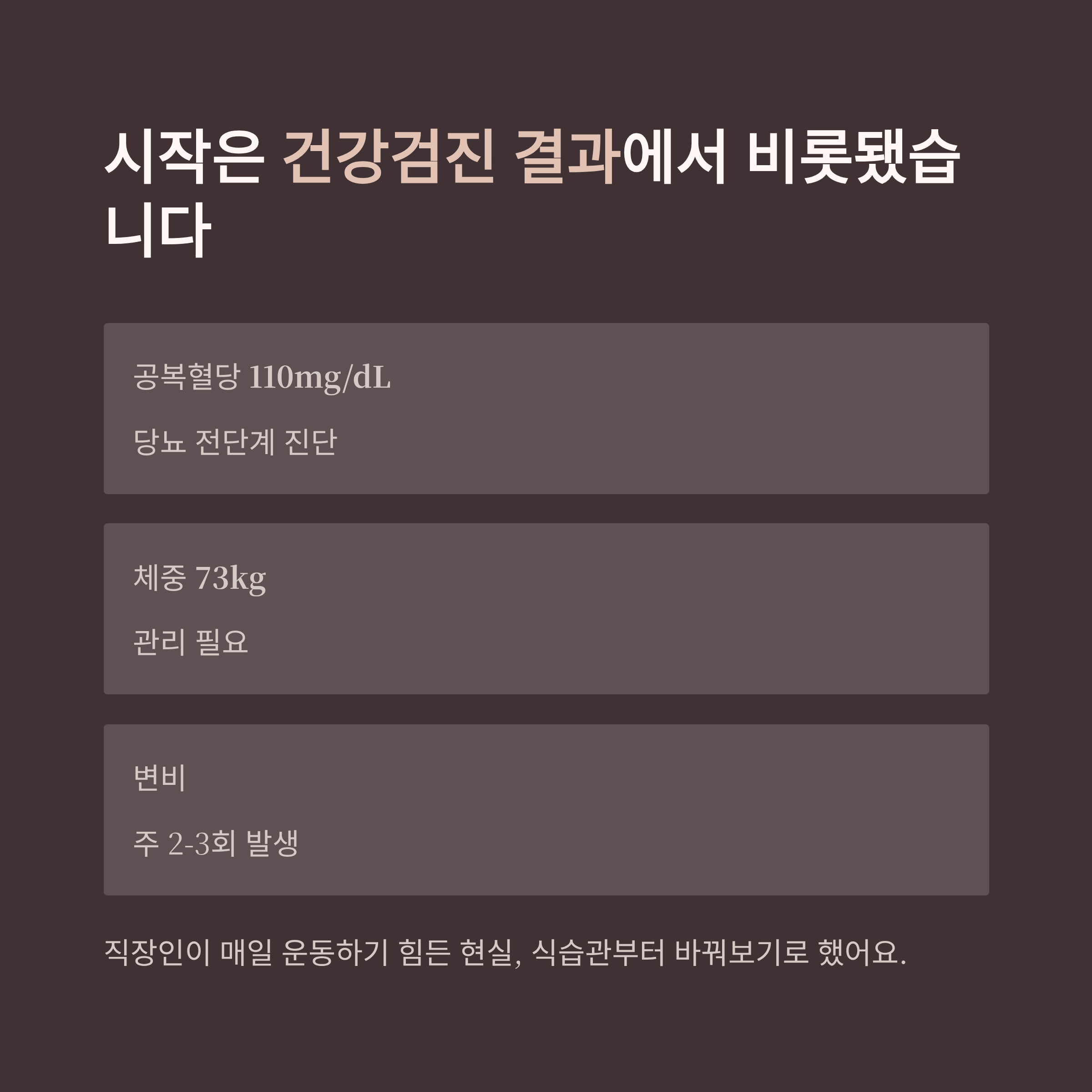 작년 건강검진에서 공복혈당 110mg/dL가 나왔습니다. 당뇨 전단계라는 무서운 진단이었죠.