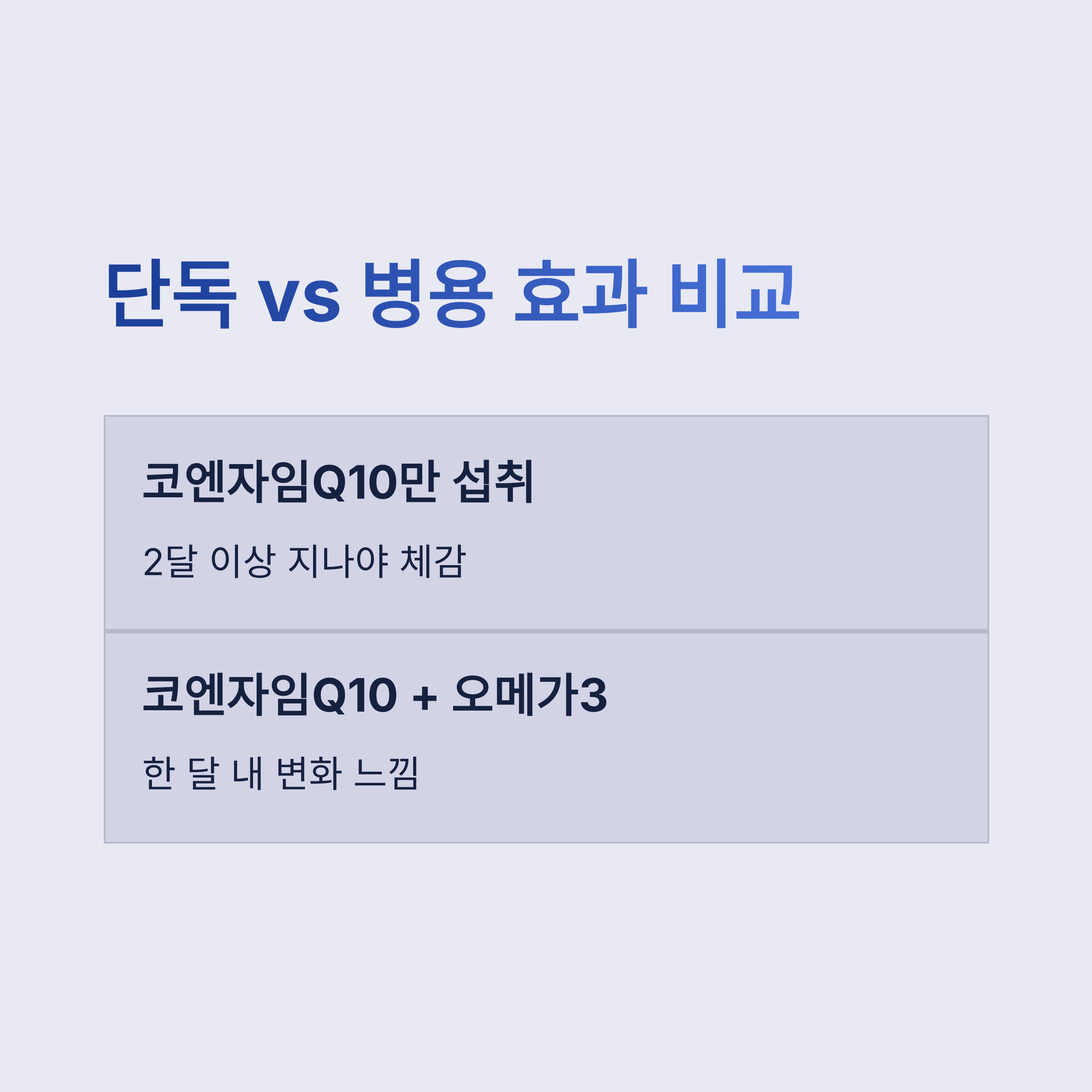 비교 기준 / 코엔자임Q10 단독 / 코엔자임Q10 + 오메가3