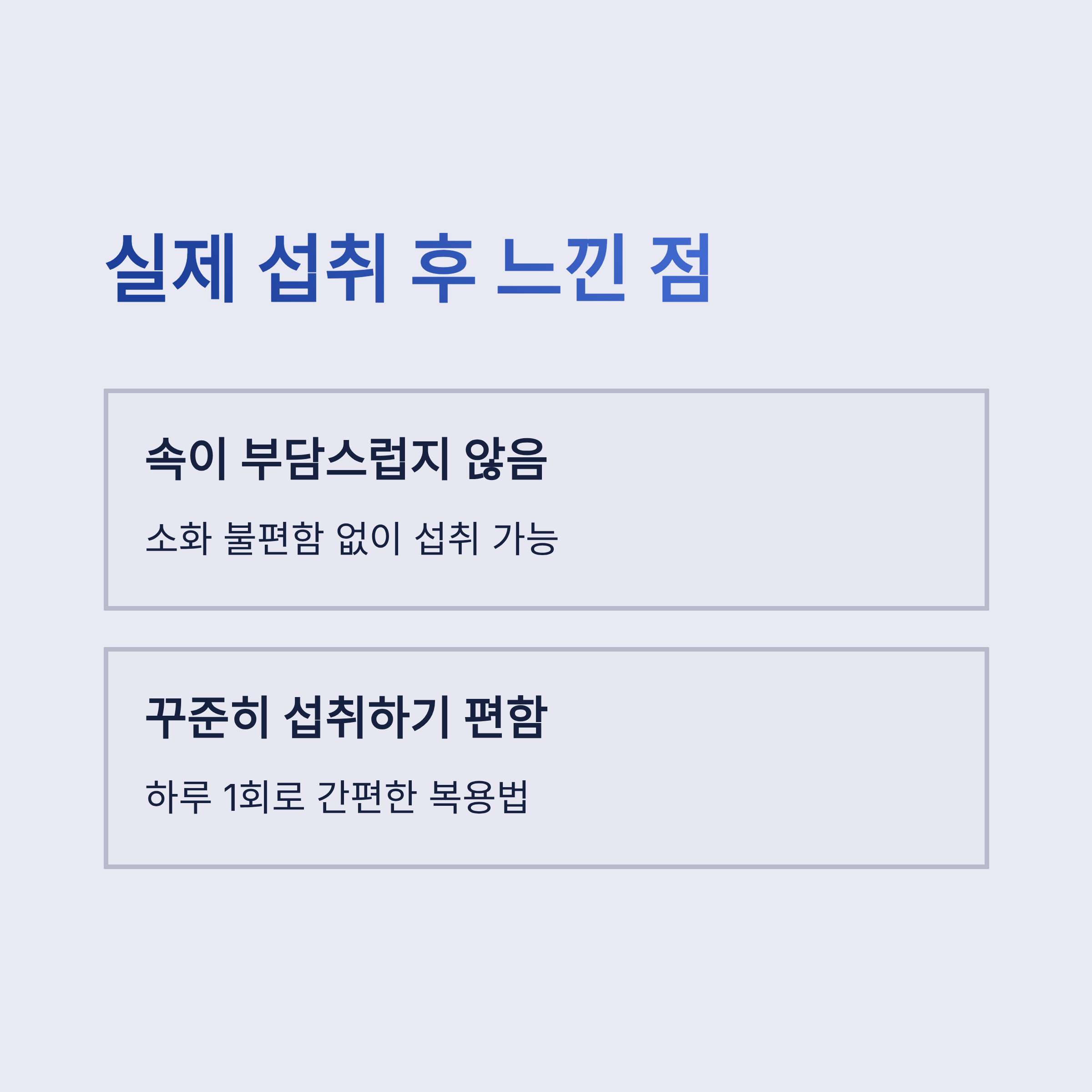 | 피로 개선 체감 | △ (2달 이상부터 체감) | ○ (한 달 내 변화 느낌) |