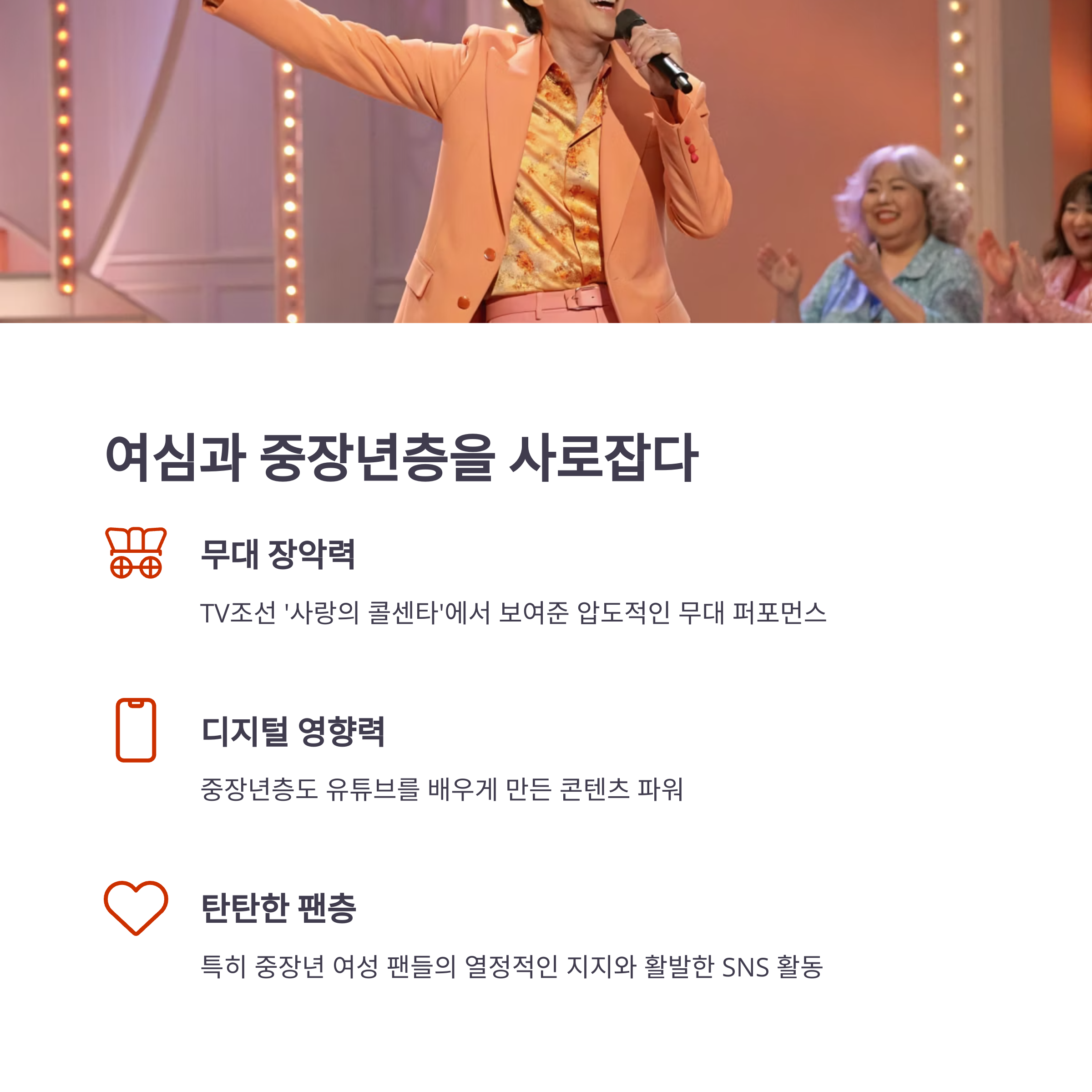 | 3 | 박서진 | 지역 행사·팬미팅 인기 | 중장년층 여성 |