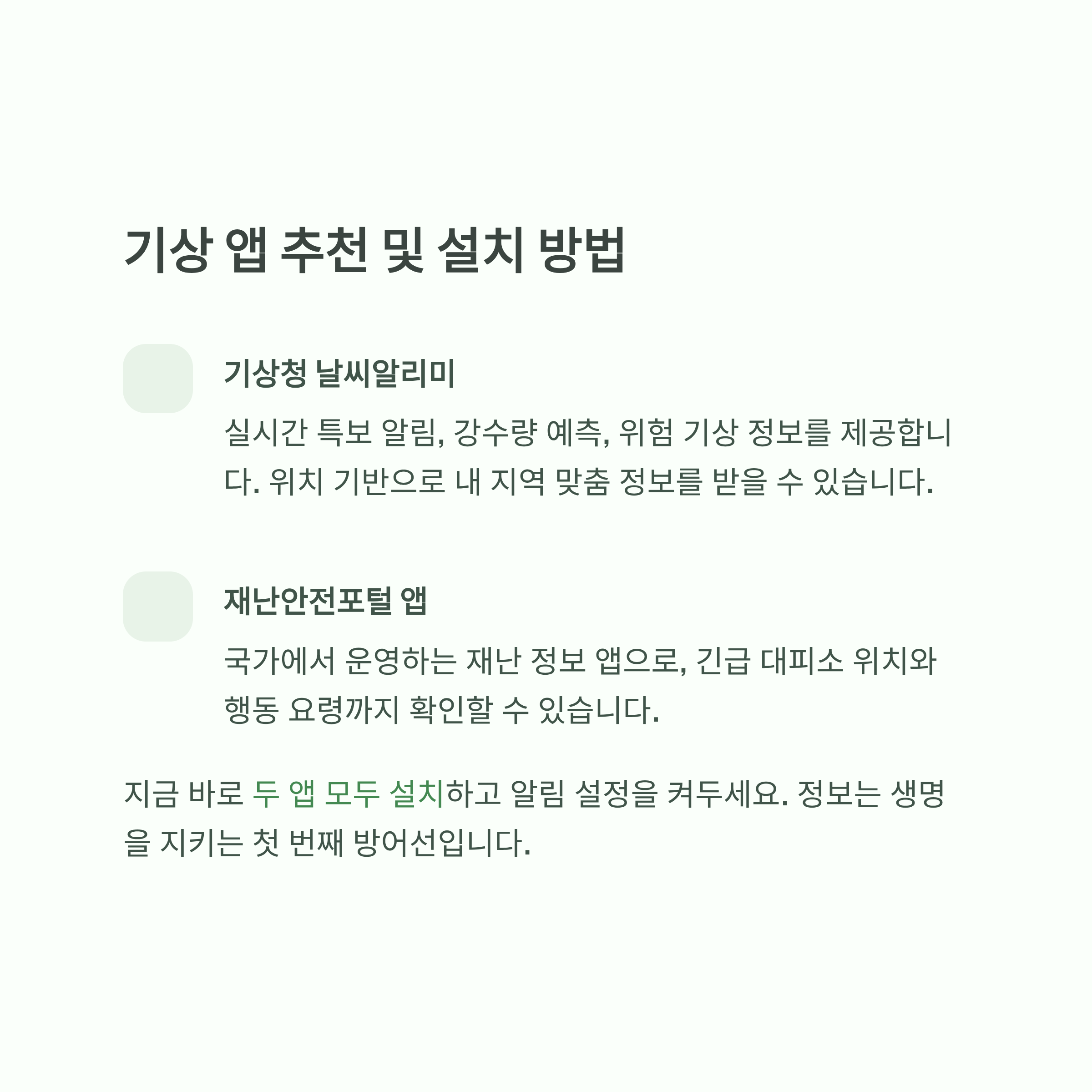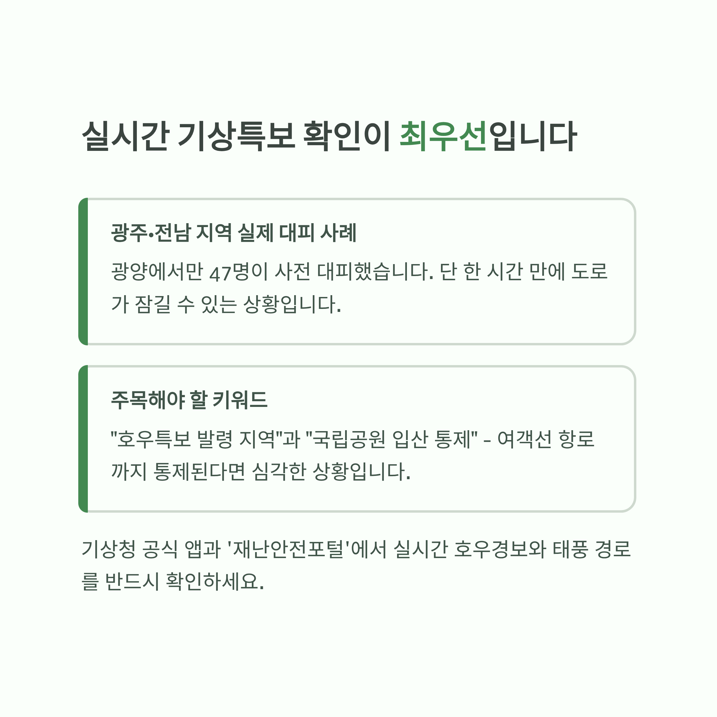 1. 실시간 기상특보 확인이 최우선이에요